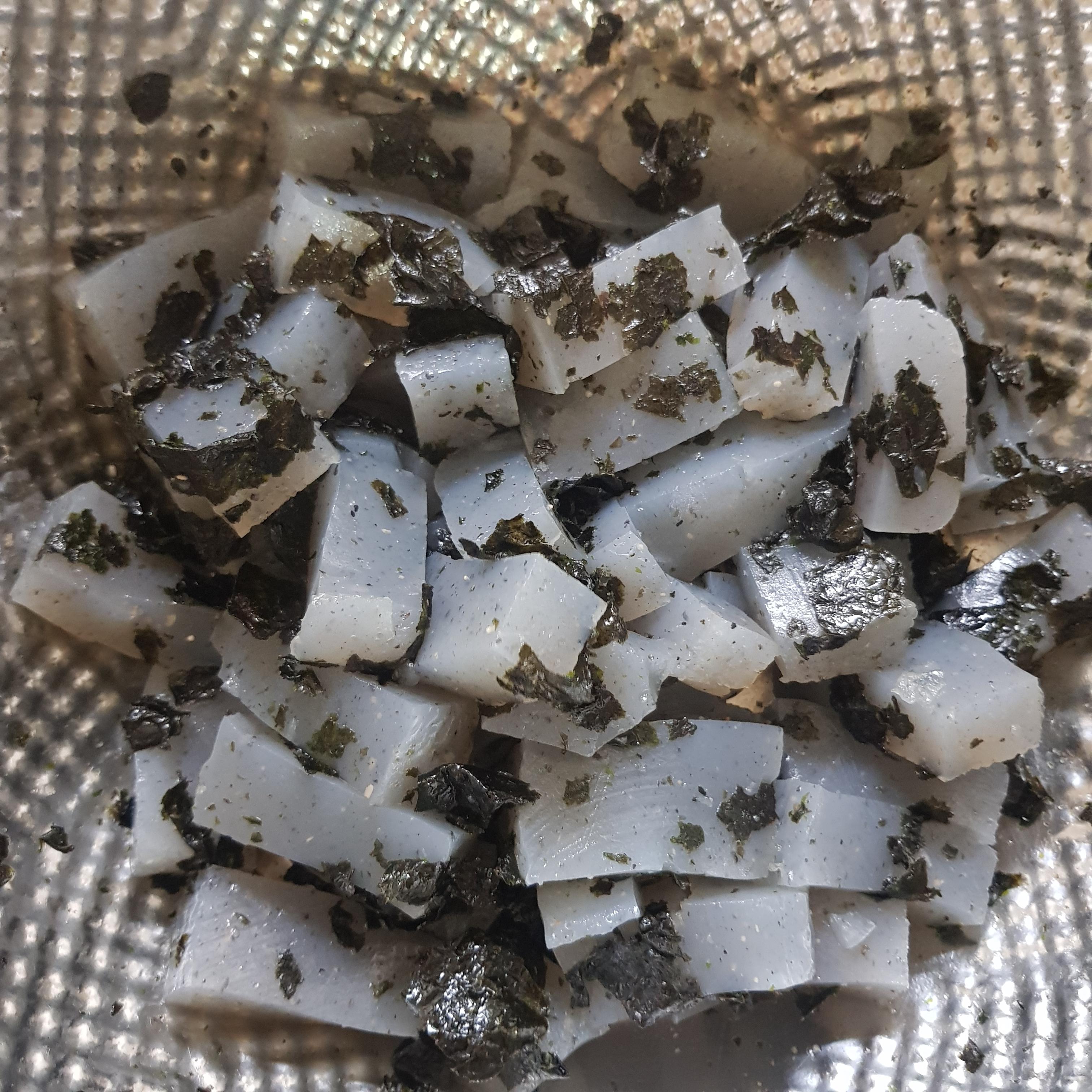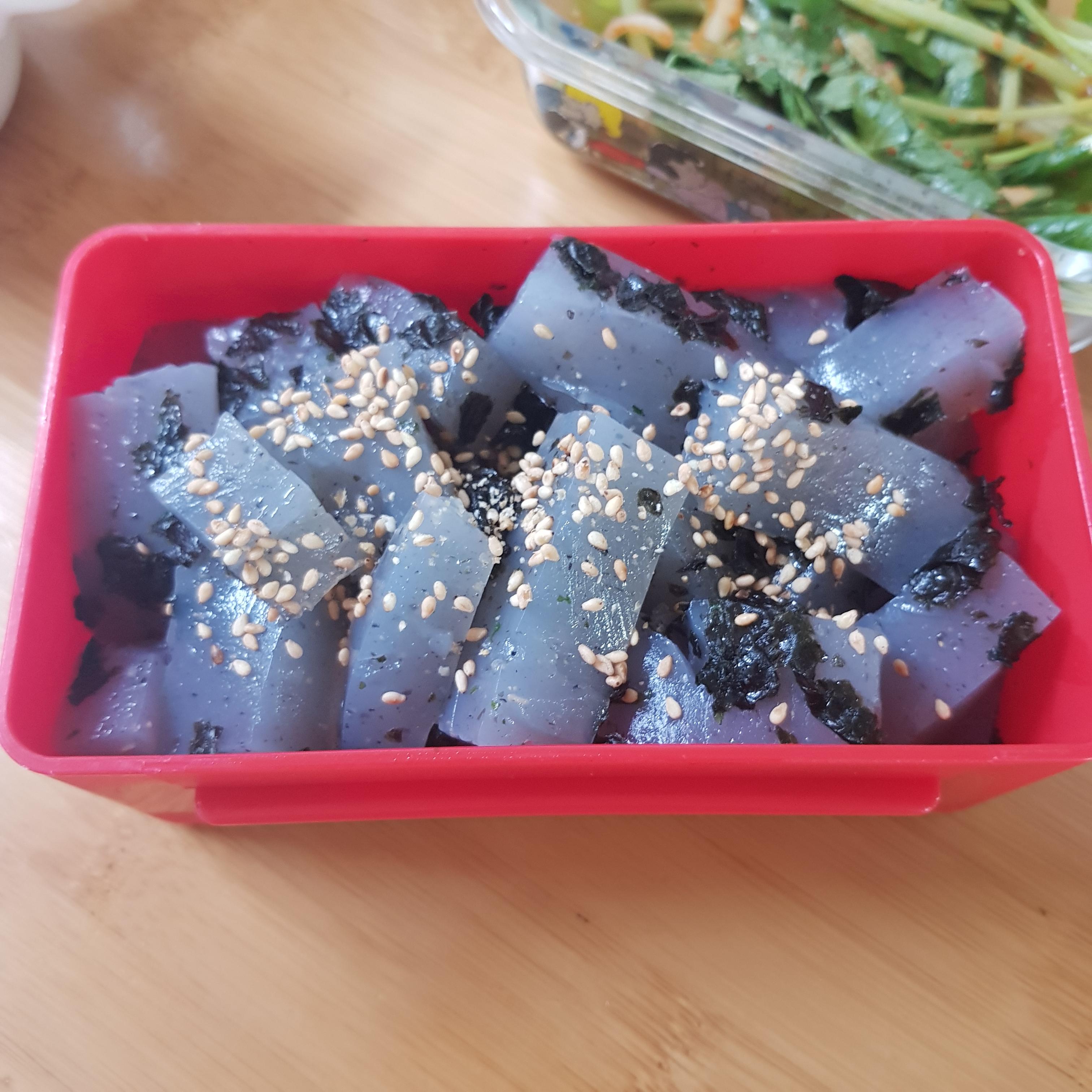 재료: 올방개묵 , 들기름or 참기름 1T, 조미김 3장(큰것),참깨