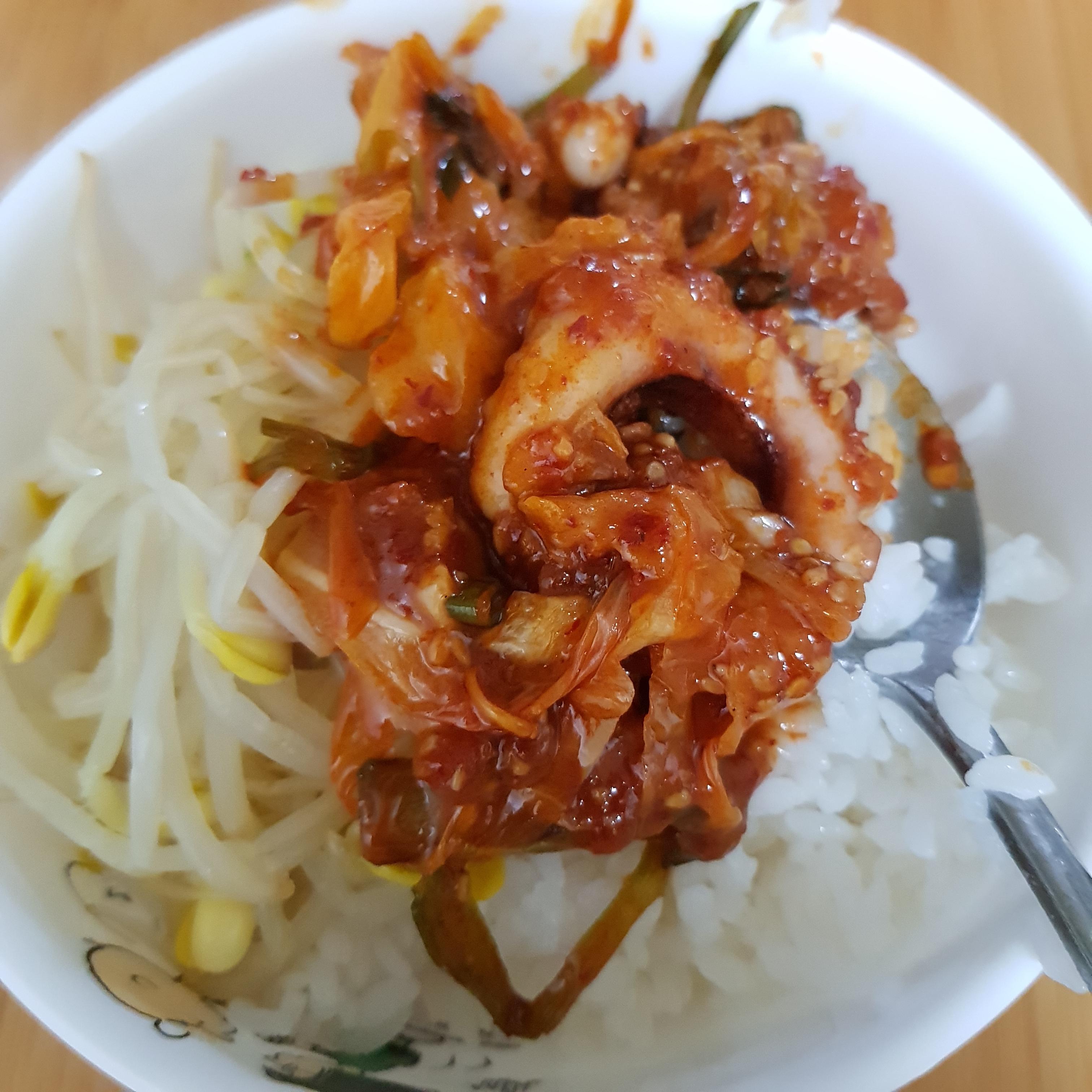 밥이 엄청 많이줍니다 ㅎㅎㅎ 콩나물과 함께 비벼 먹었어용 ㅎㅎ