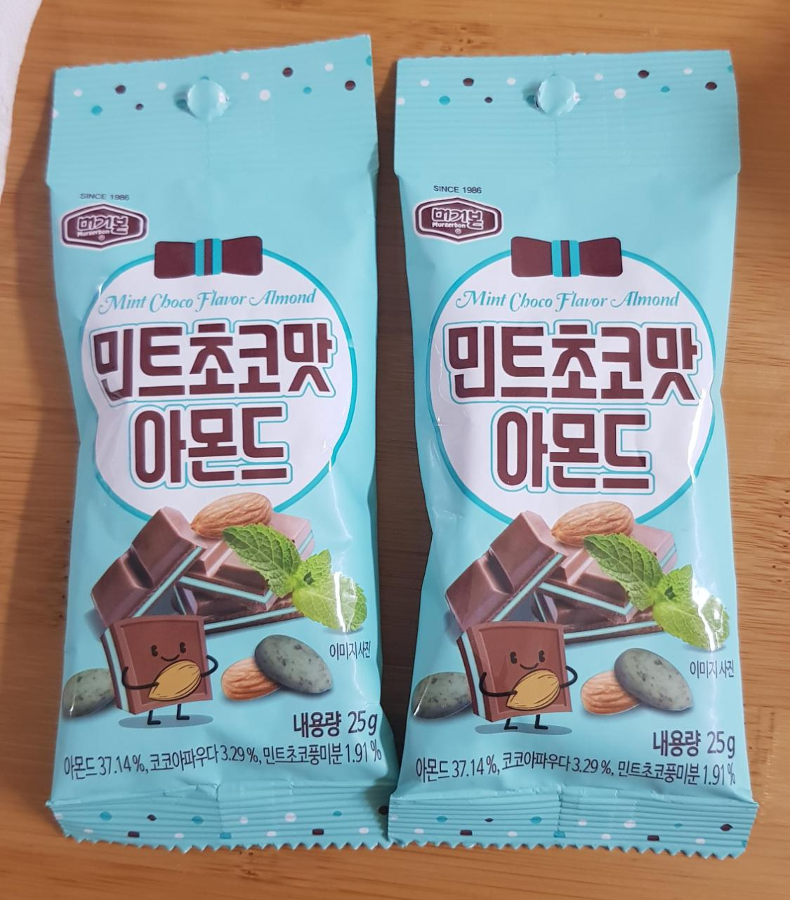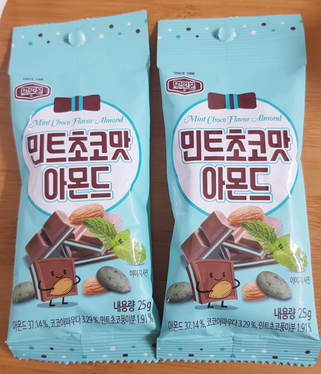 아몬드위에 초코+ 민트맛향을 넣어서 민트초코맛이에요