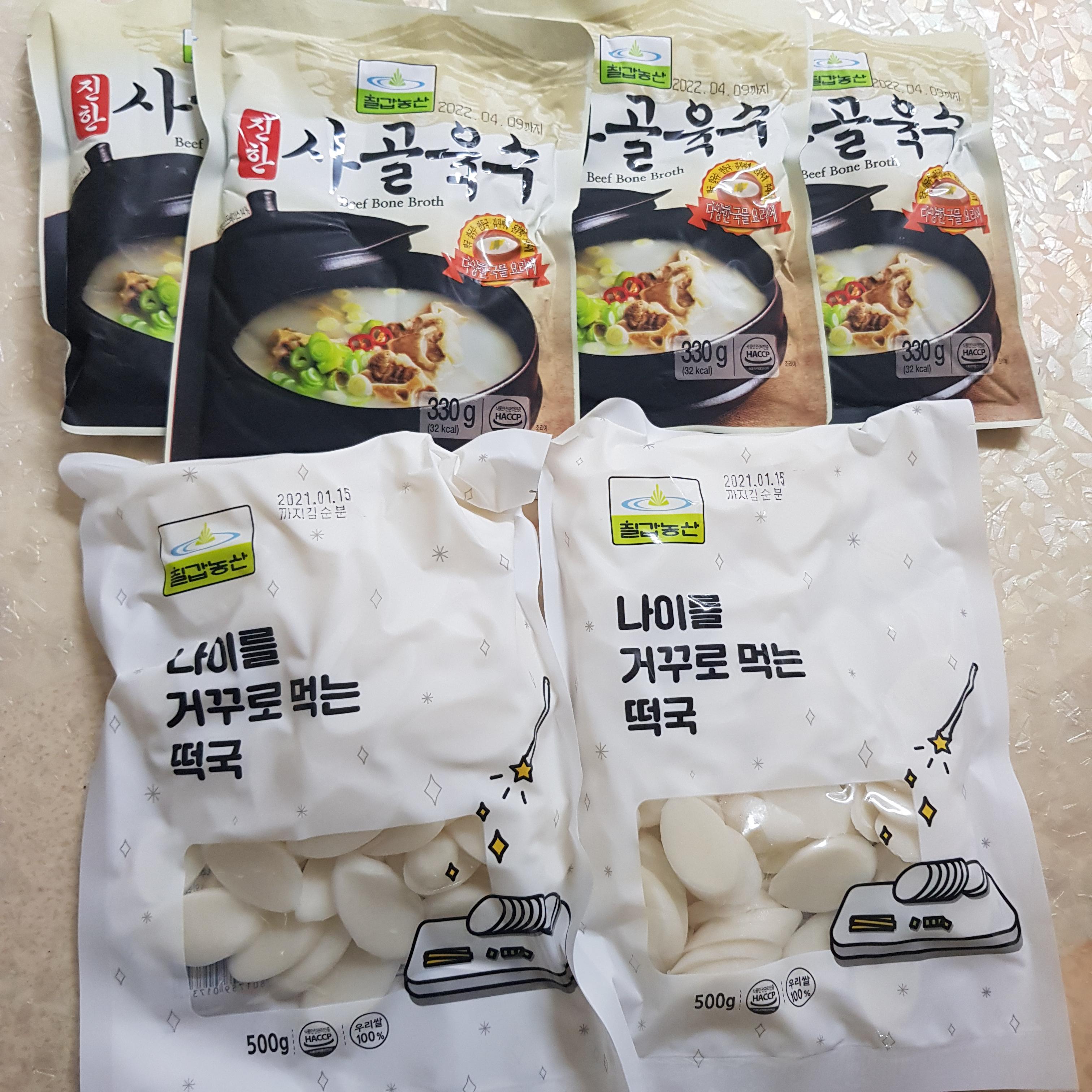7900원 무배 500g 떡국떡 2개 사골육수 4개 구성입니다.