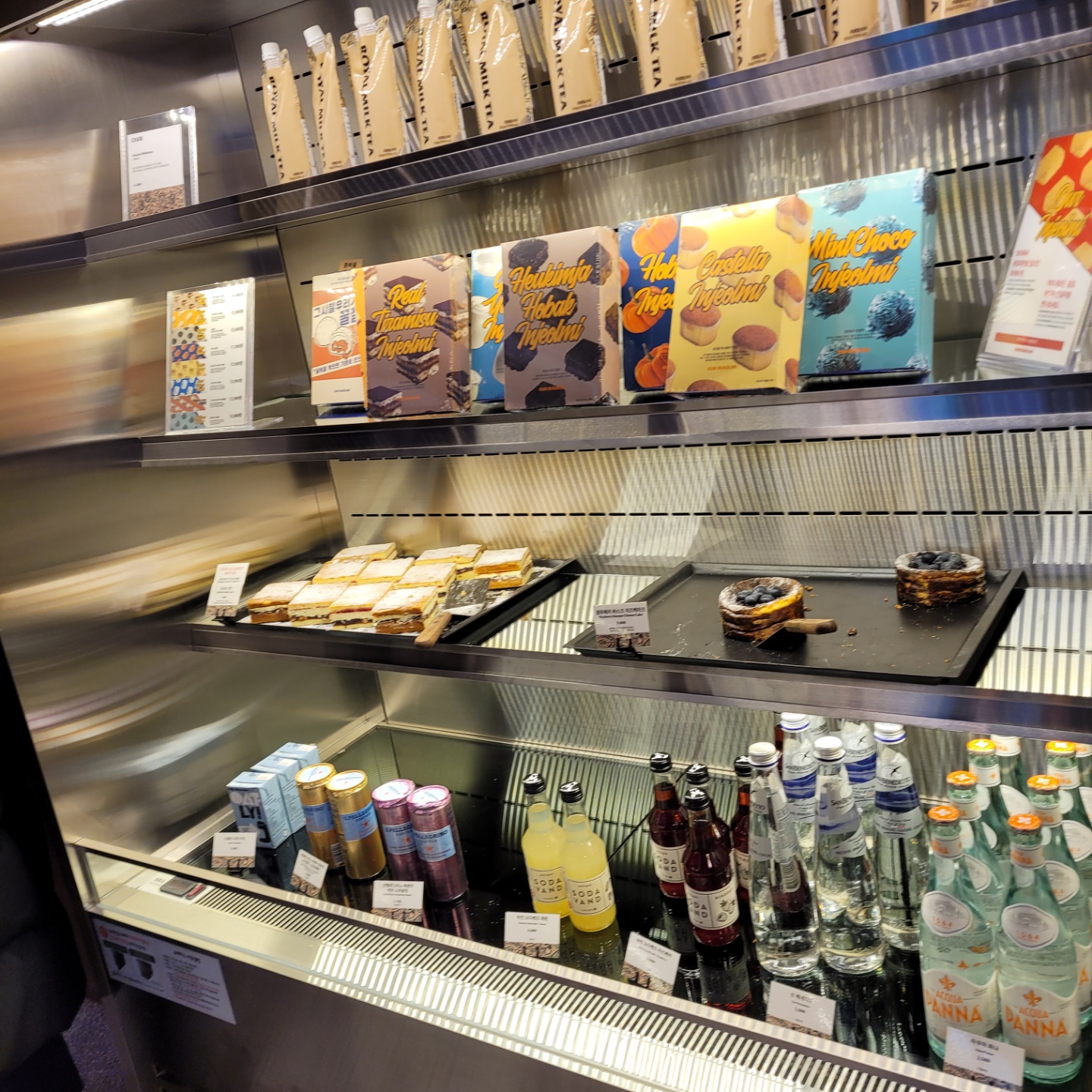 밀크티와 선물용 음료 작은 케이크들.. 가격대가