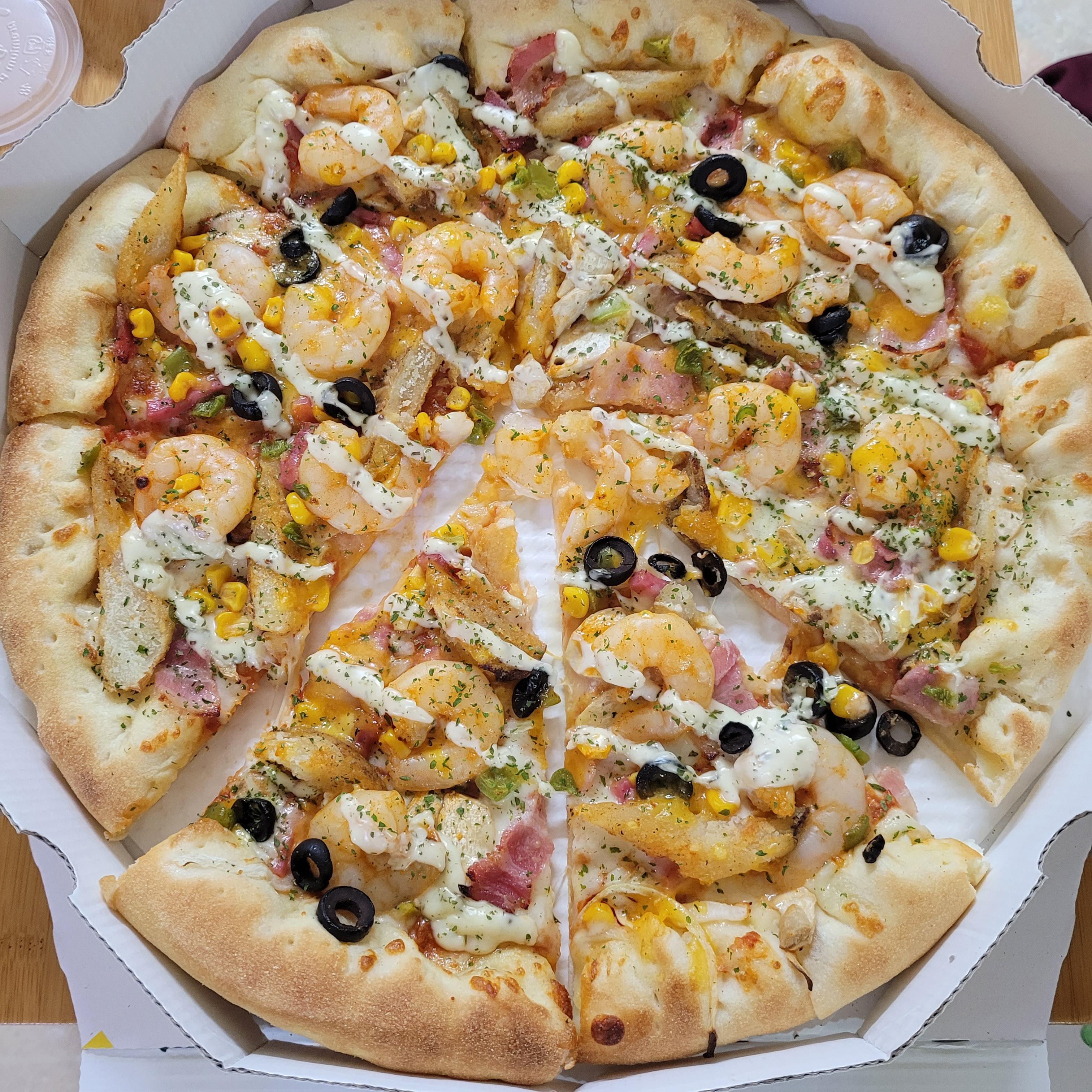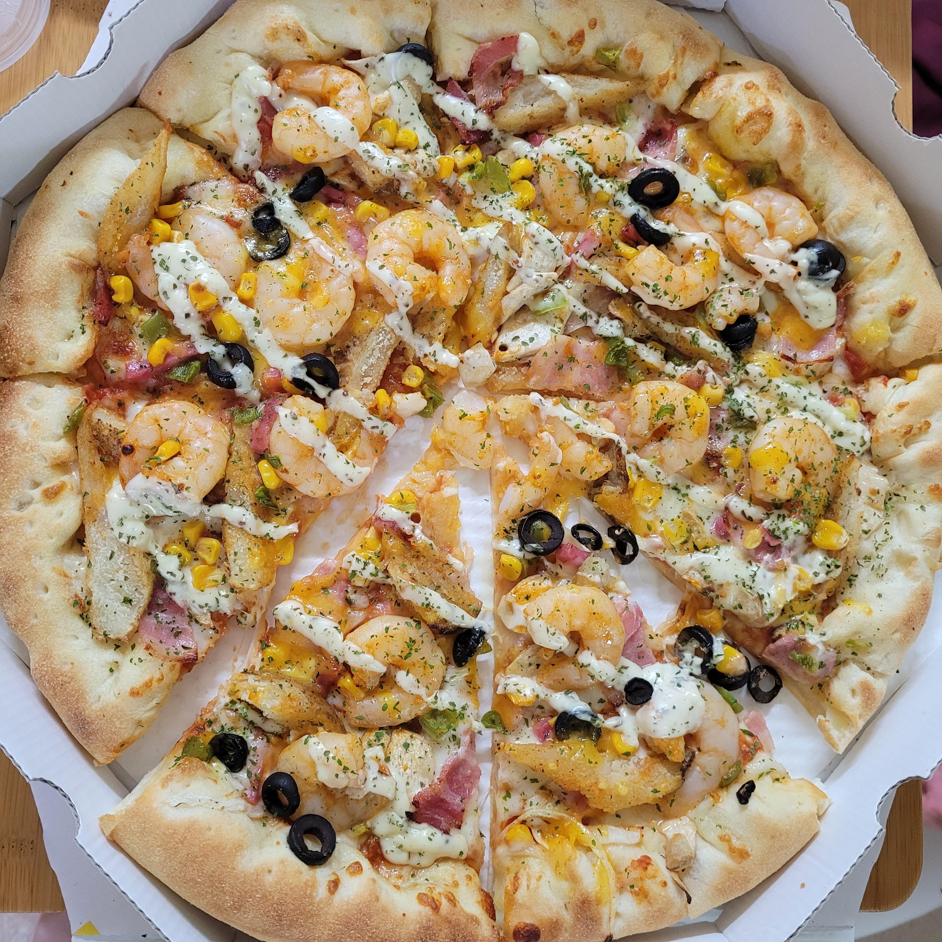 반올림샵 메뉴추천으로 베이컨쉬림프 치즈링 피자를