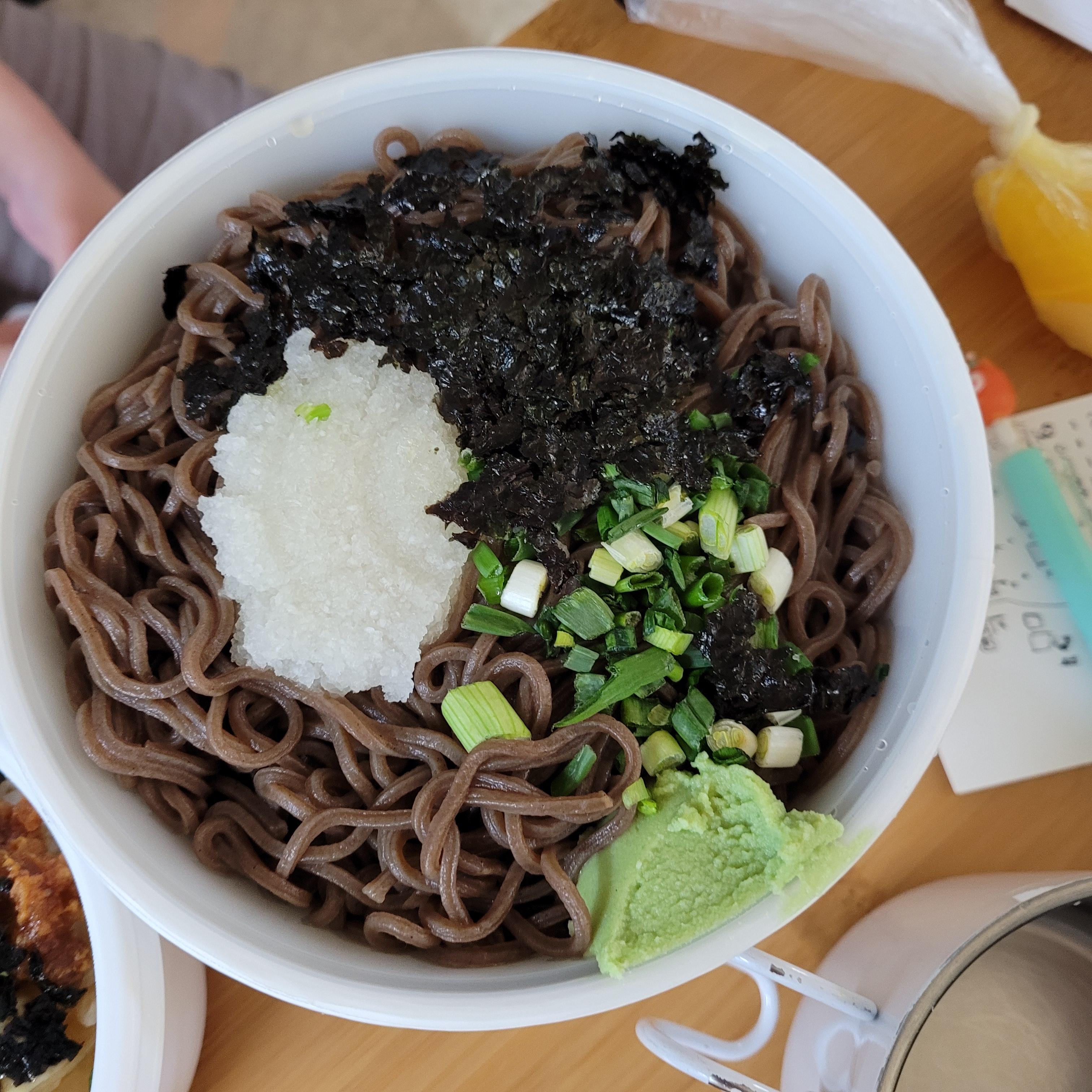 냉모밀 포장하면 요렇게 잘 나옵니다. 무와 와사비