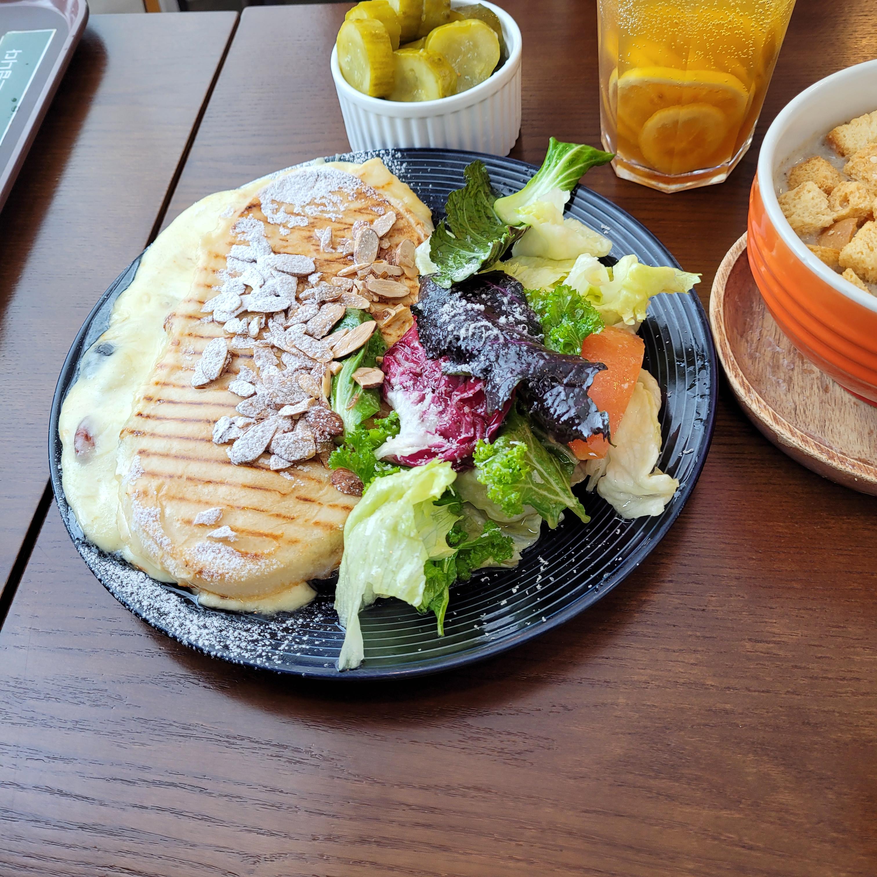 허니카망베르치즈 파니니와 양송이크림스프 ,
