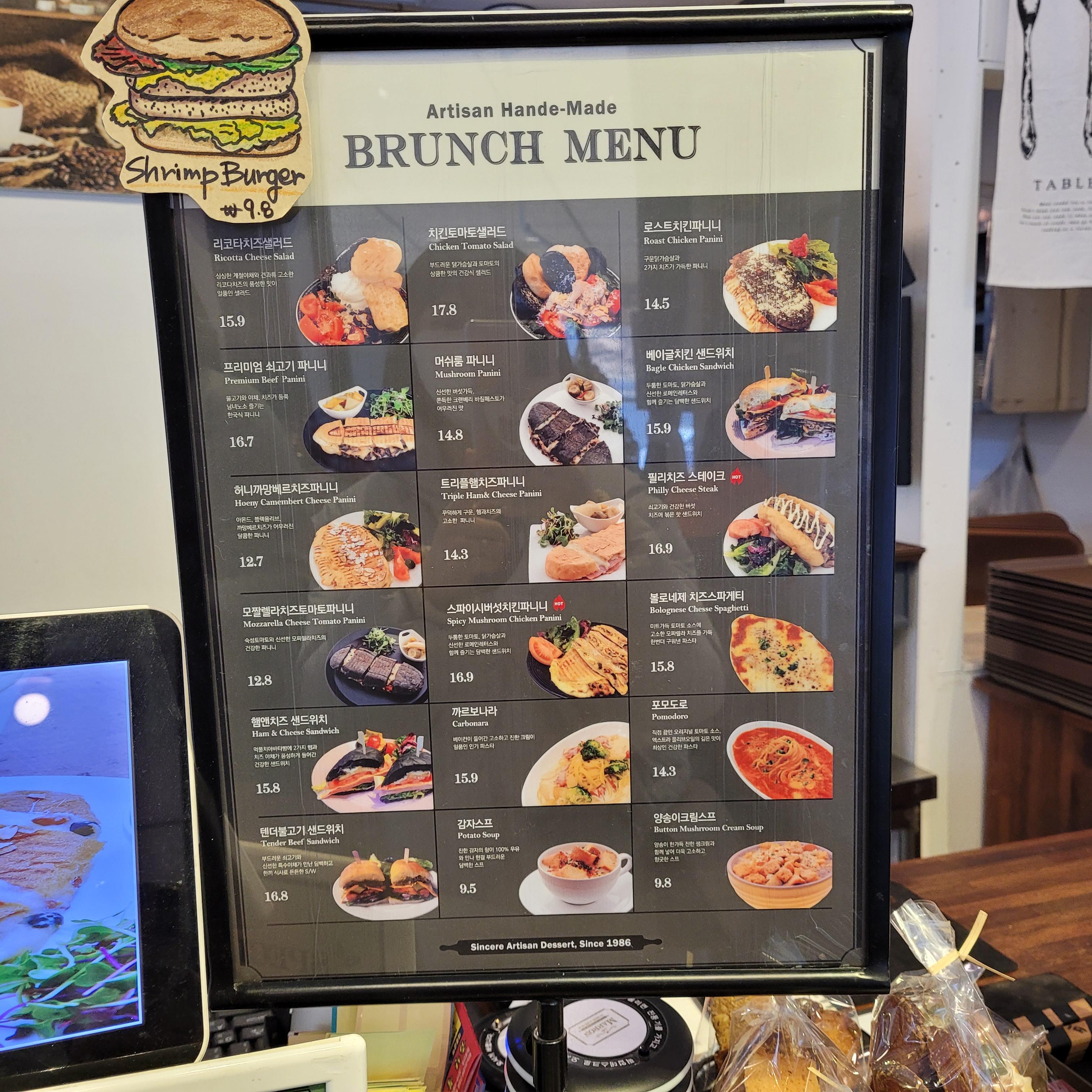 예쁜 옥길동 카페 마론 메뉴판입니다. 스프를 직접 만들다고해서