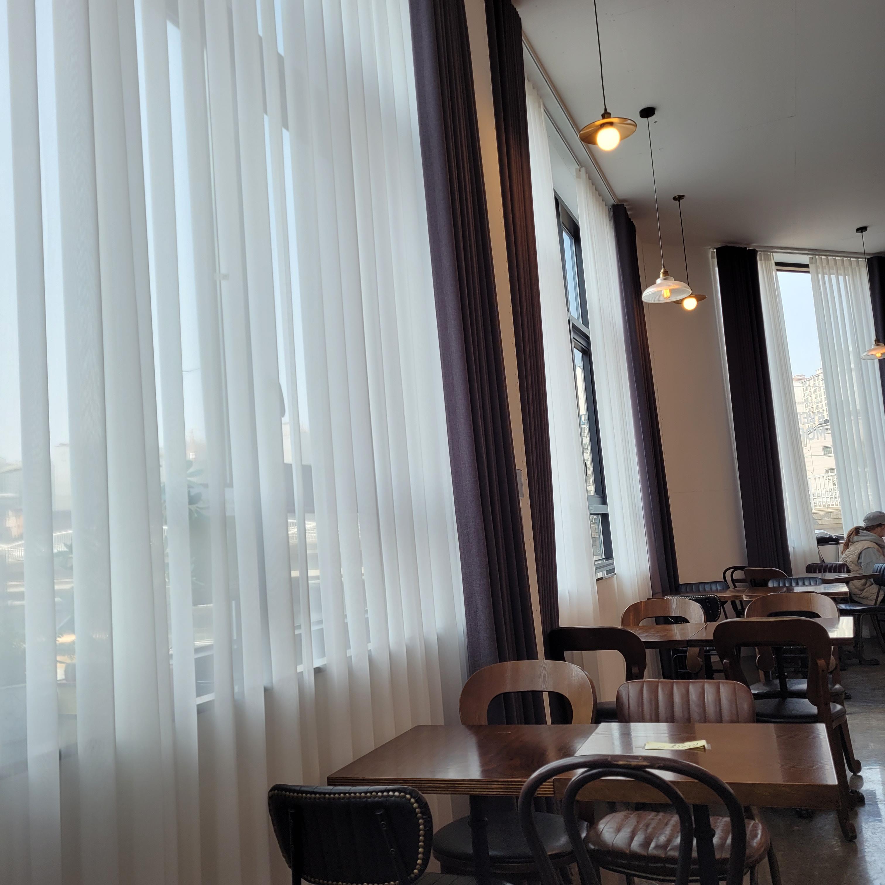 2층에서 먹었는데 깔끔하고 모던한 느낌의 카페였어요.
