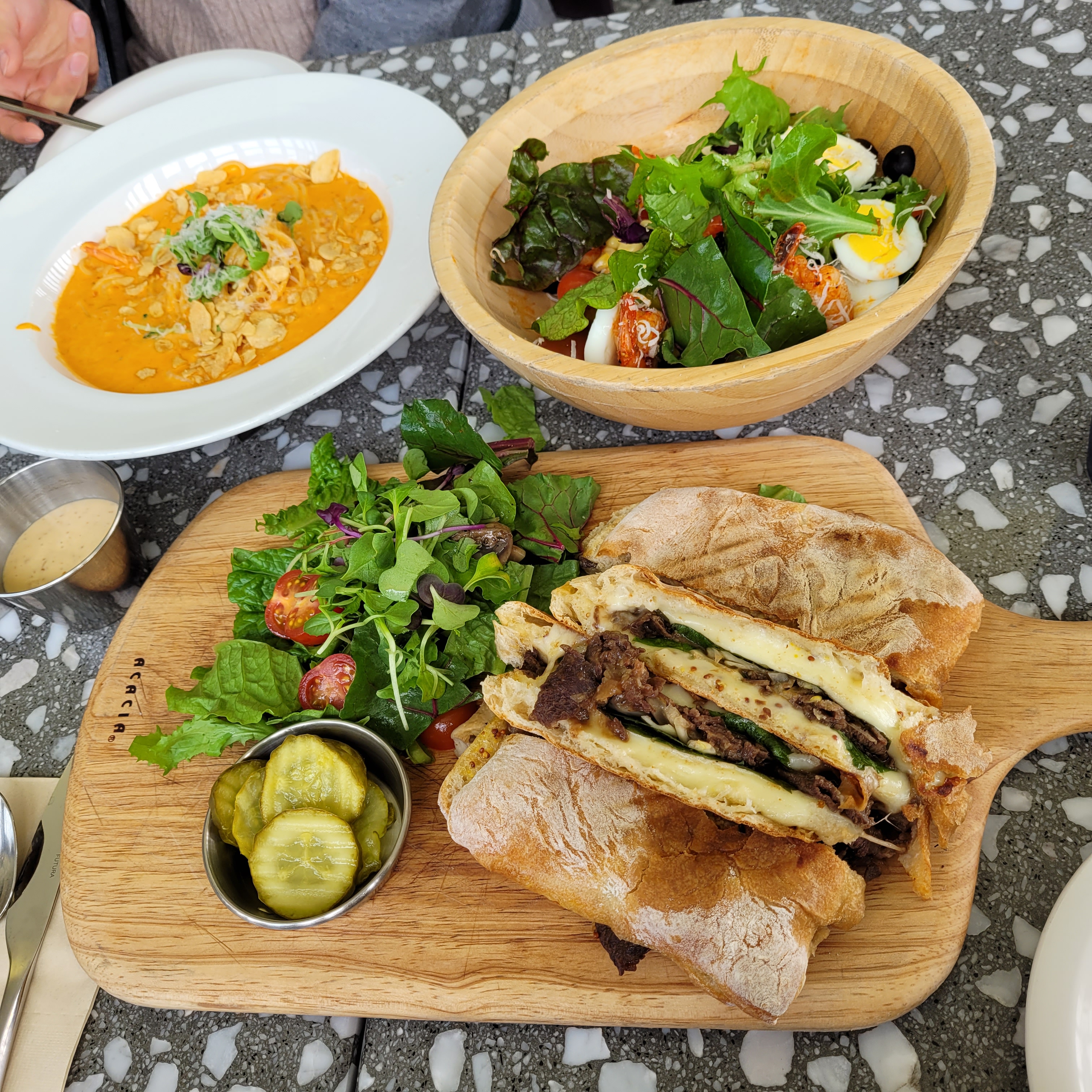 로제파스타, 불고기파니니, 샐러드를 3인이서 먹고