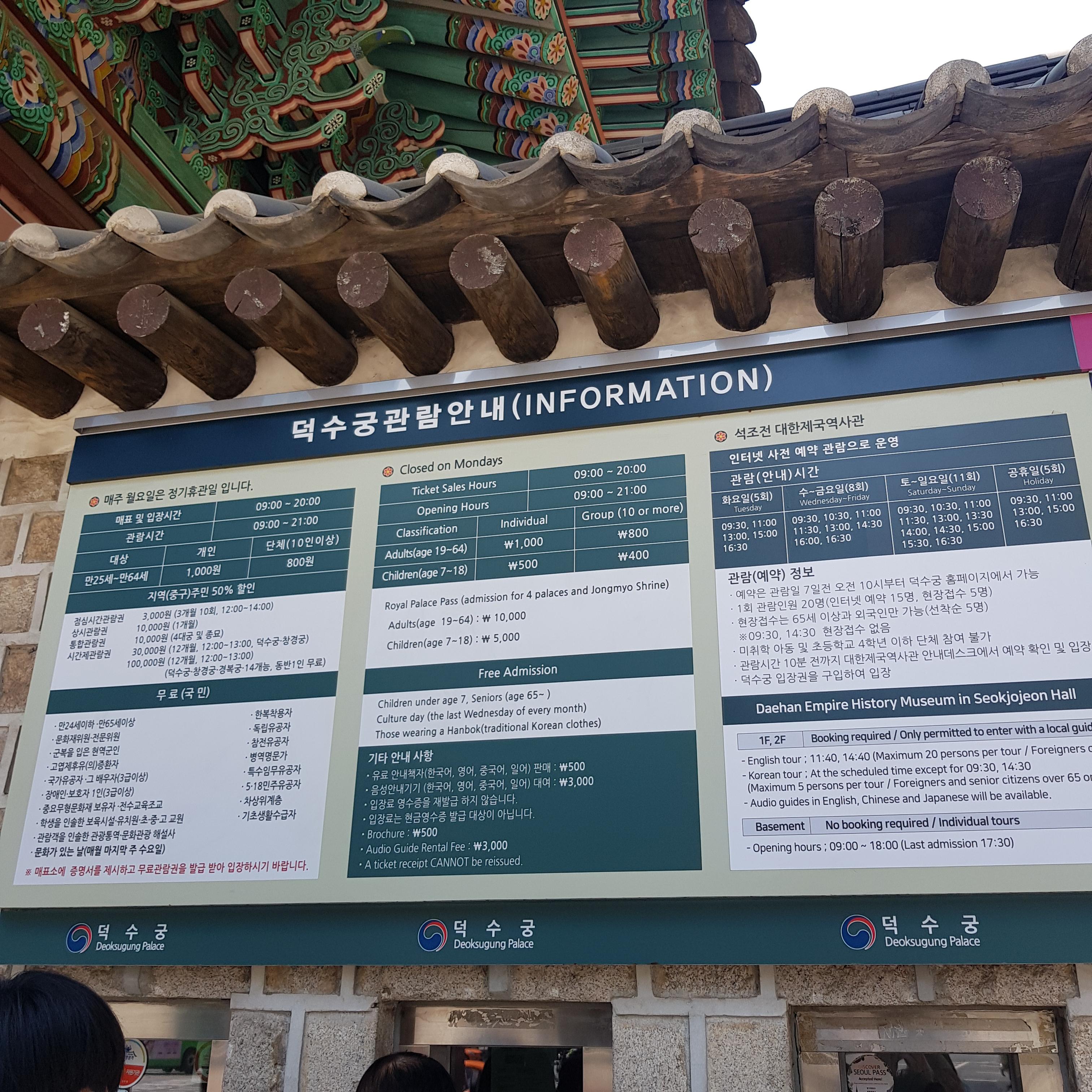덕수궁 관람료는 만25~ 만65세 까지 천원