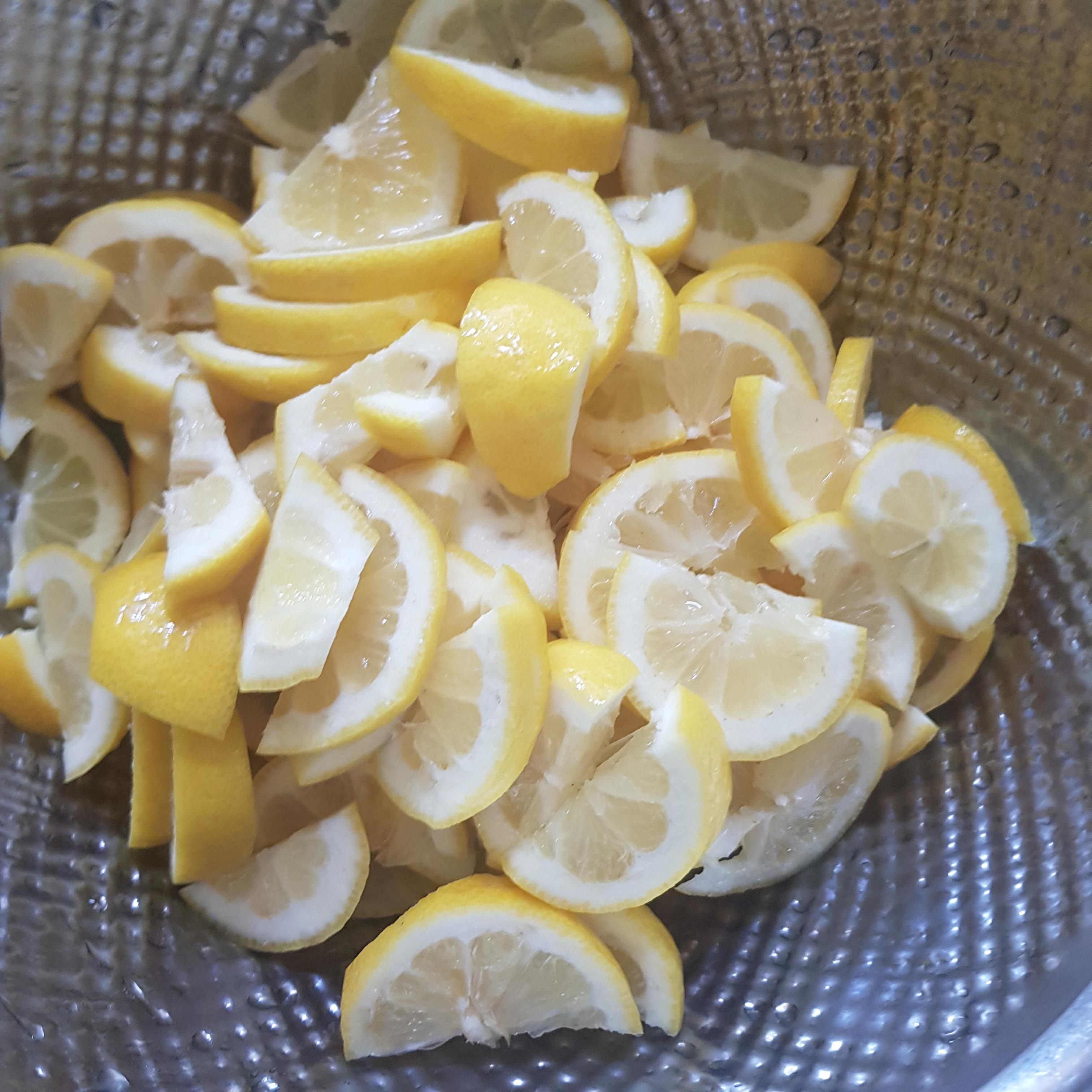 재료: 레몬 10개 , 유리병 5개(500ml) , 비정제설탕 2.5KG(흰설탕가능),