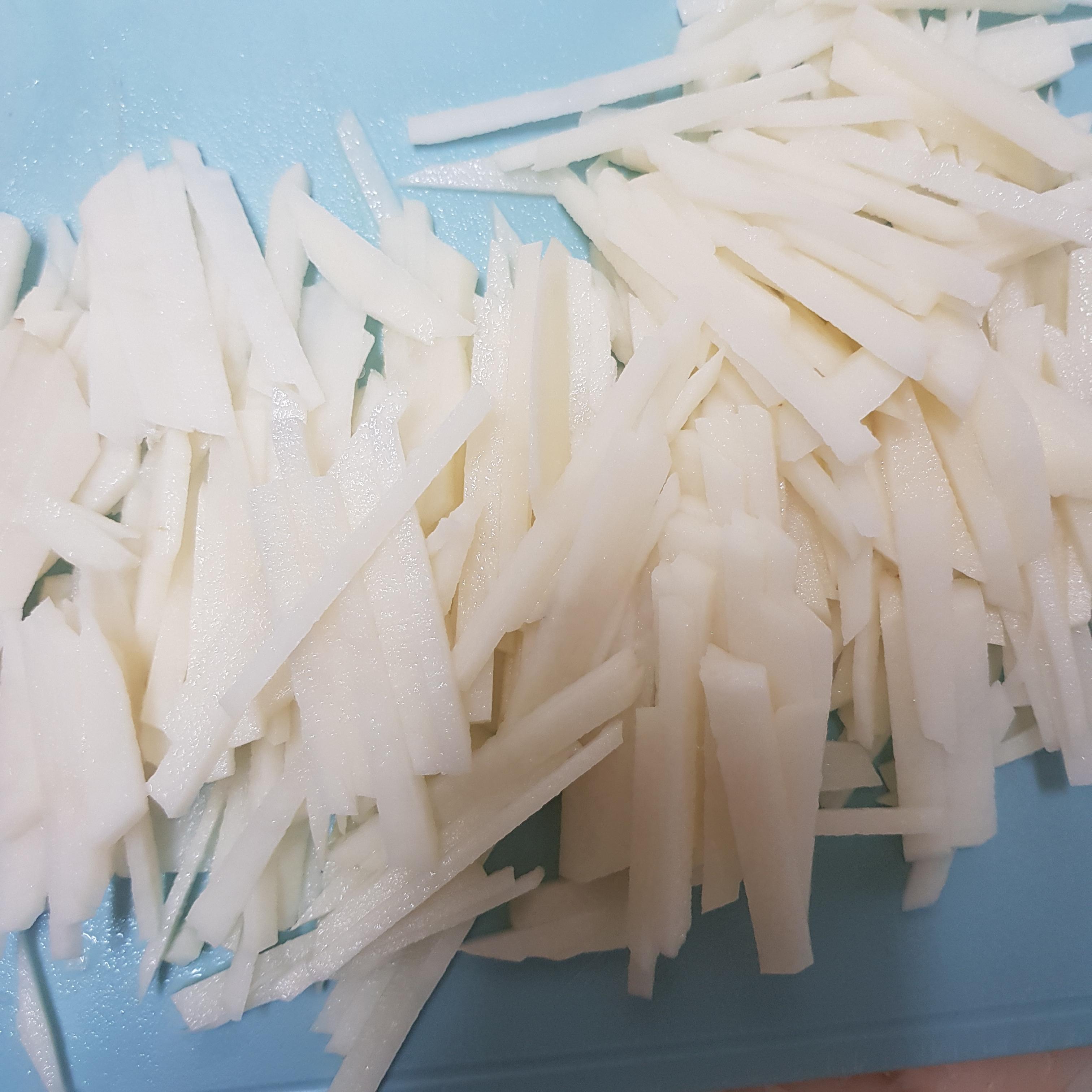 두번째 감자는 껍질을 까서 채 썰어줍니다.
