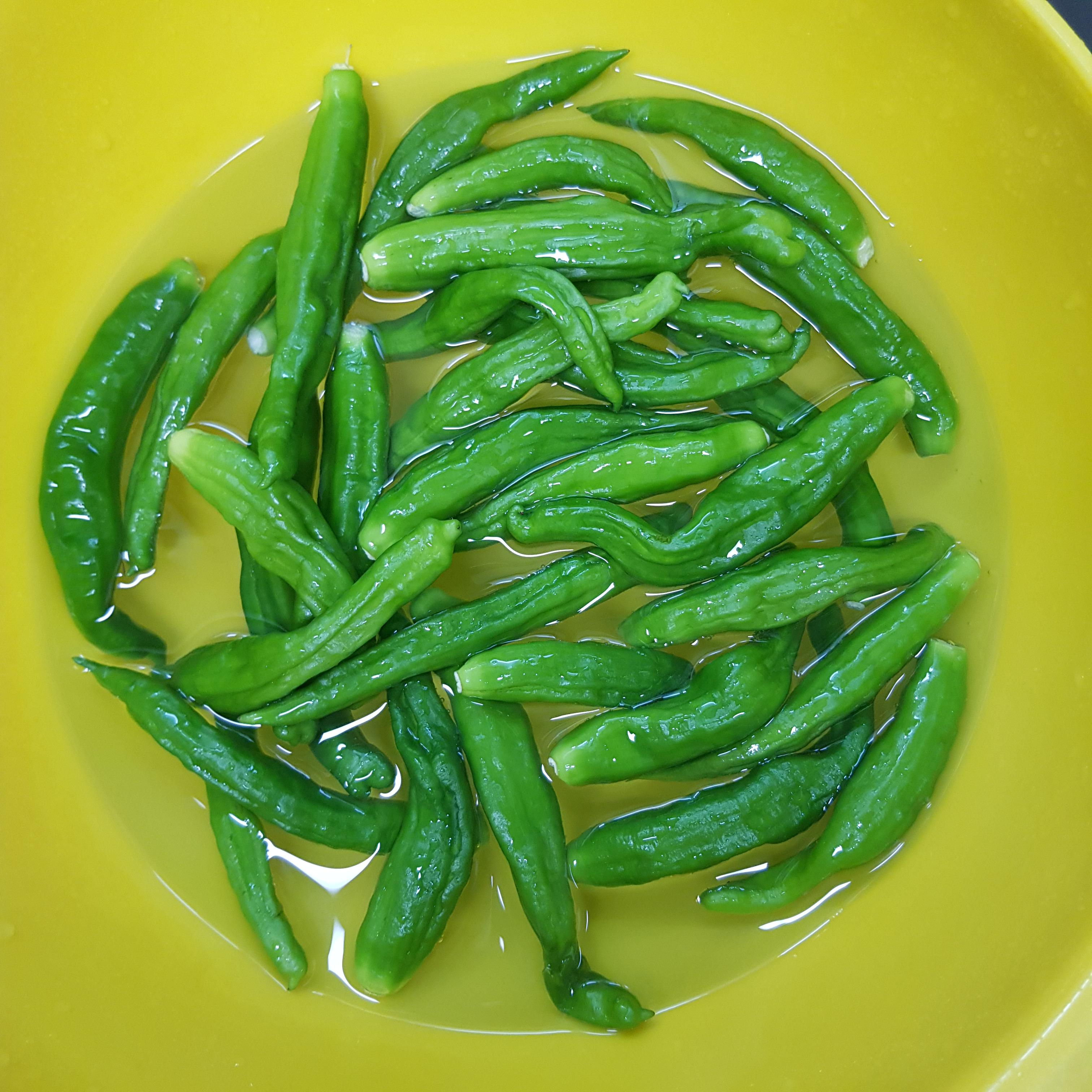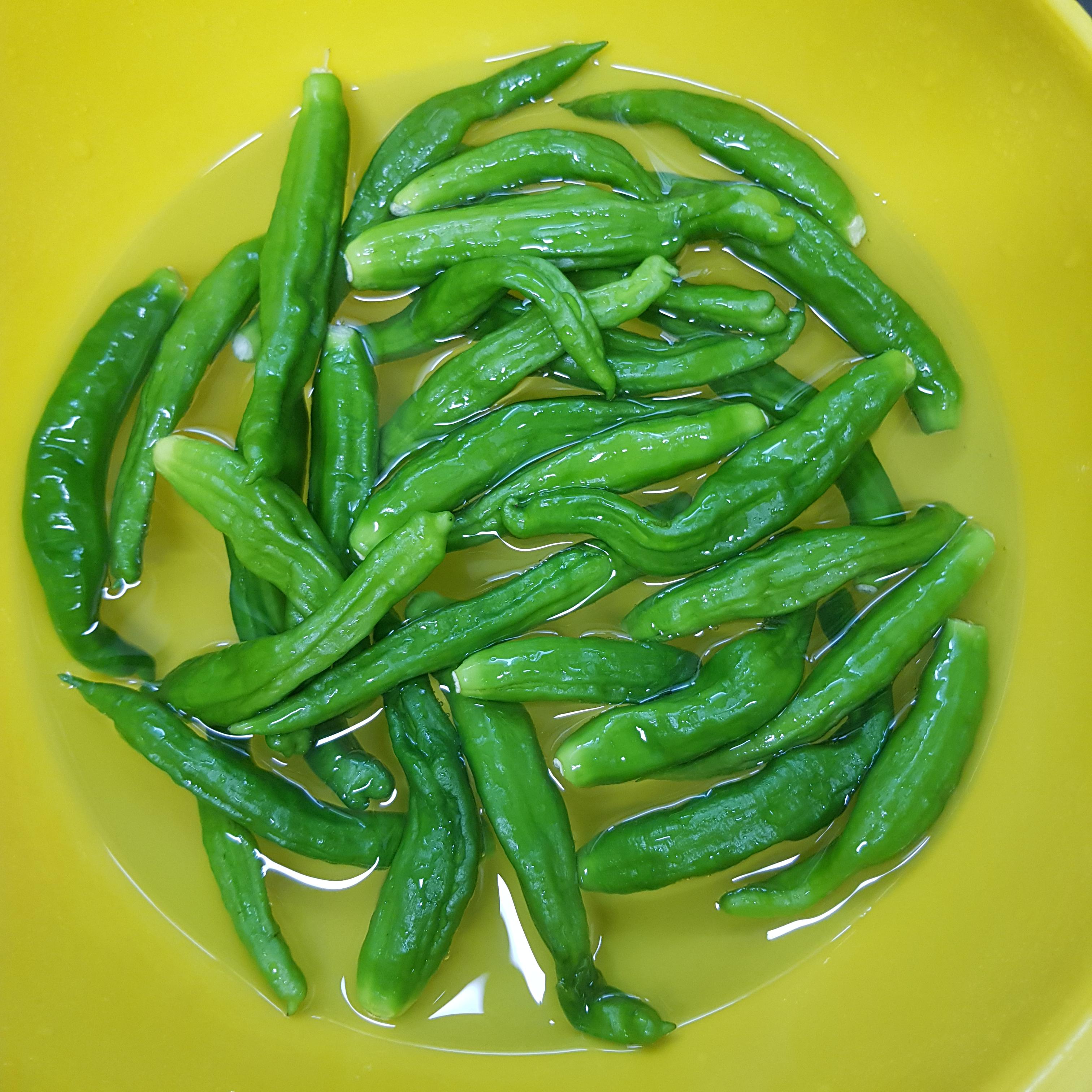*꽈리고추 씻은후 이쑤시개로 1개당