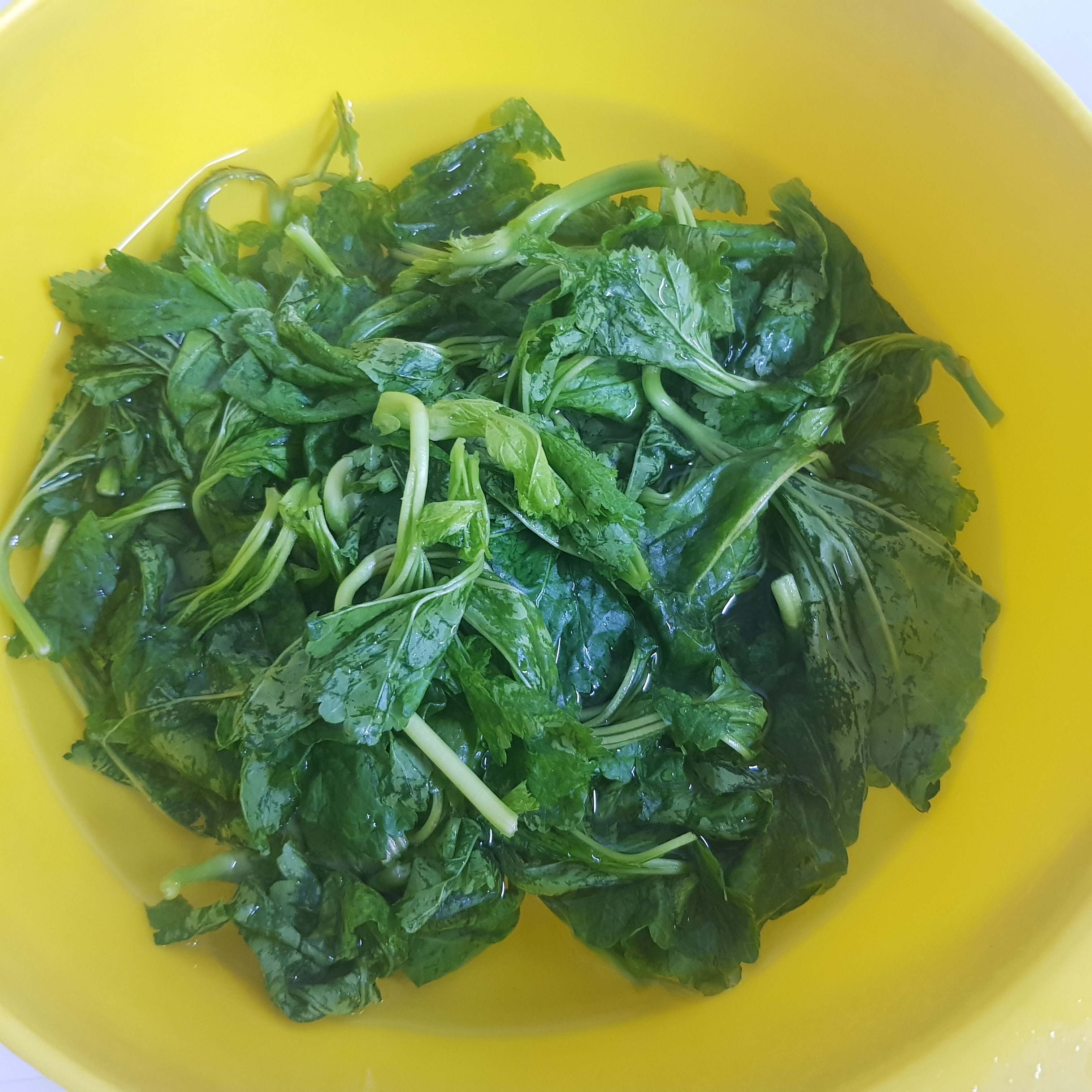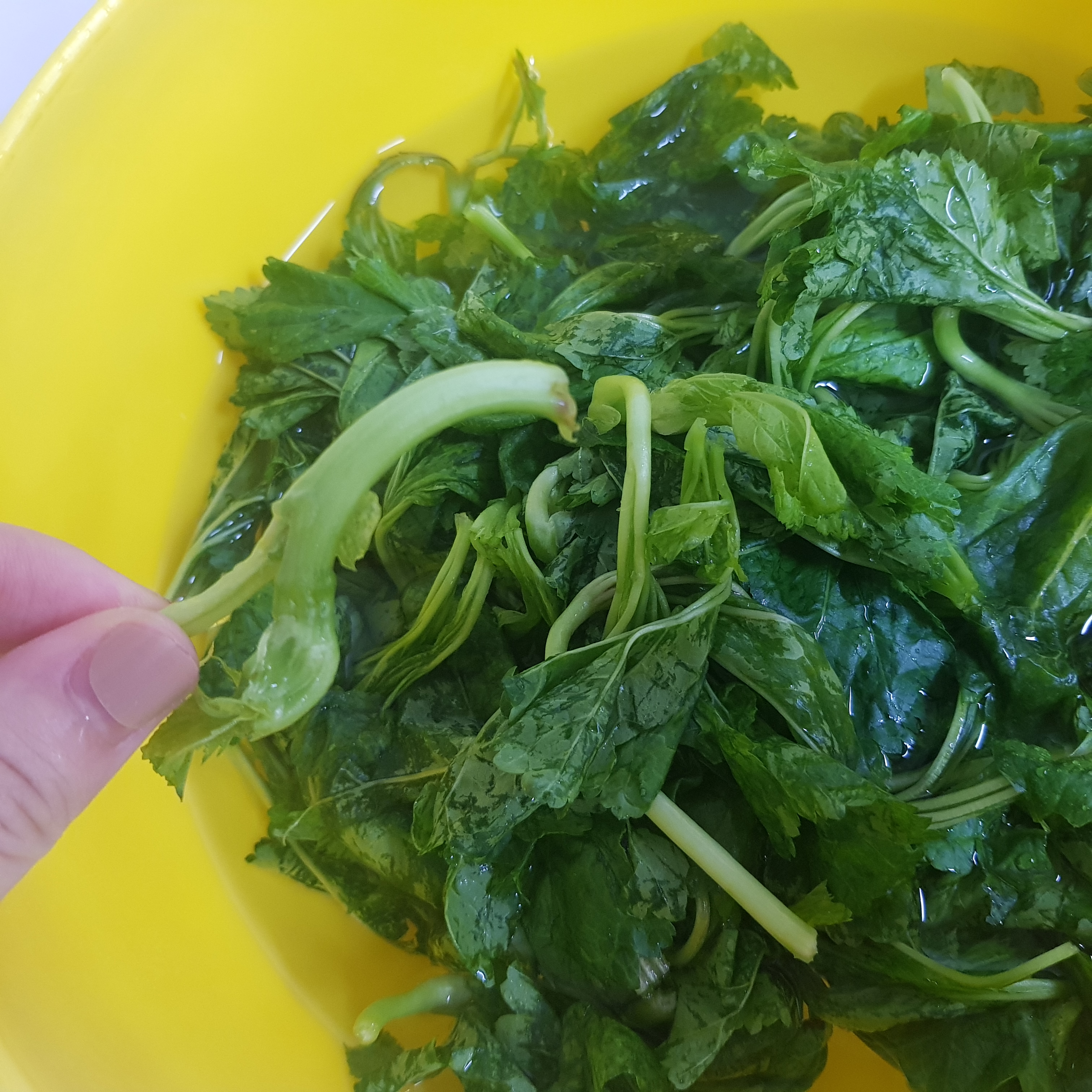 두번째, 다듬은 아욱을 손으로 꾹꾹 주물러 주세요.