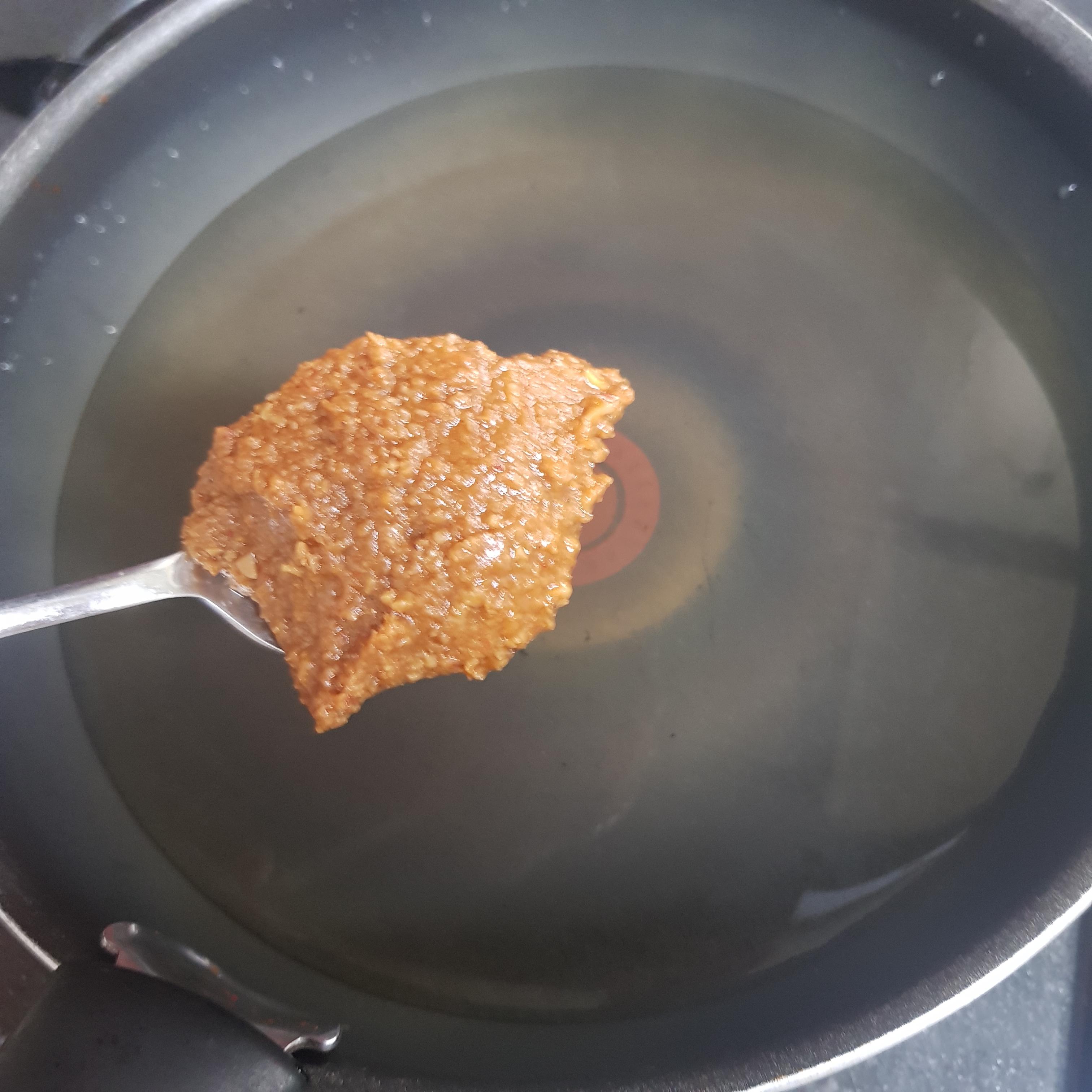 재료: 아욱 200g ,소금1t, 간장1t,보리새우1t,마늘1t,다담된장 1.5t ,물 700ml ,두부