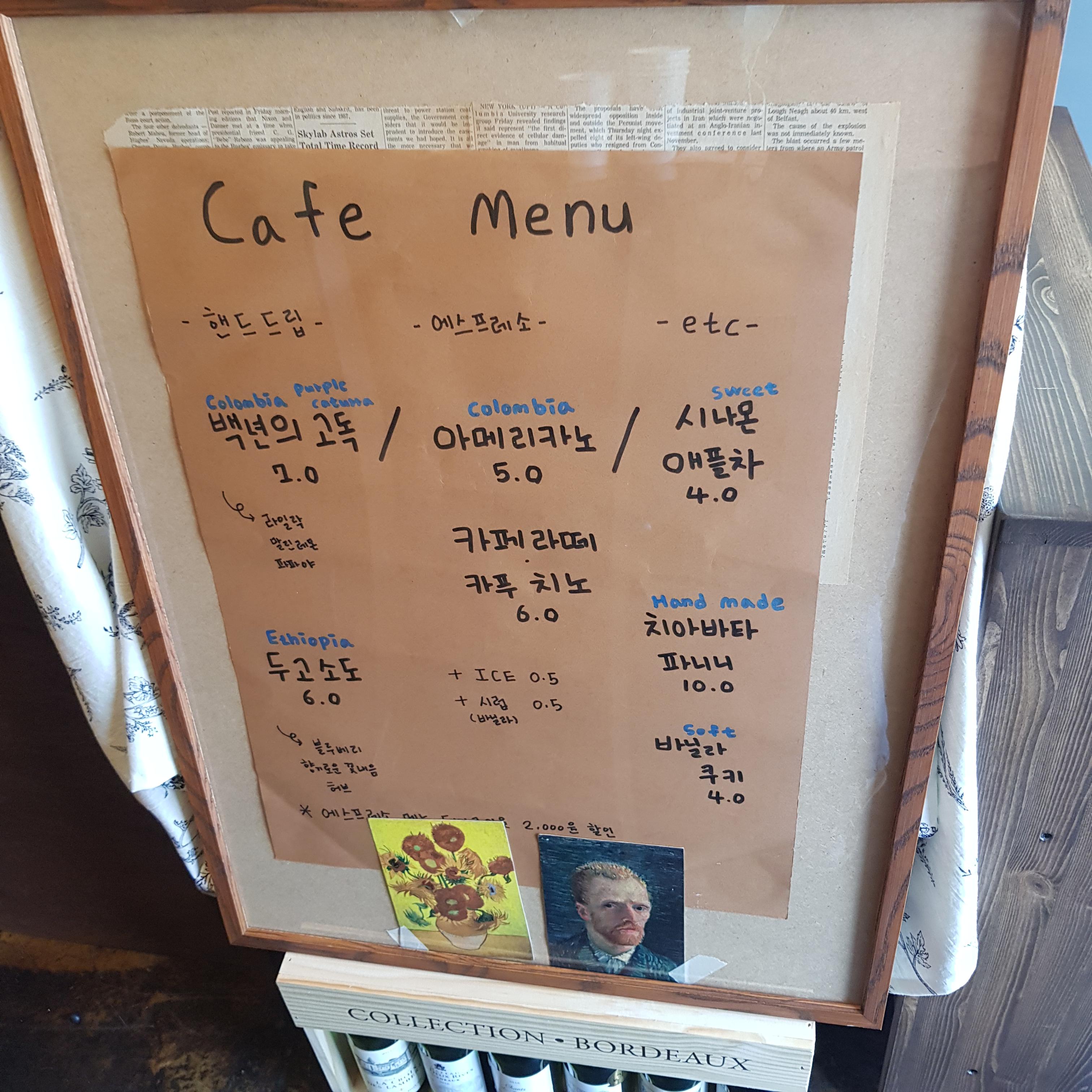 메뉴는 라떼 카푸치노 , 파니니 , 차, 쿠키등을 판매하네요.