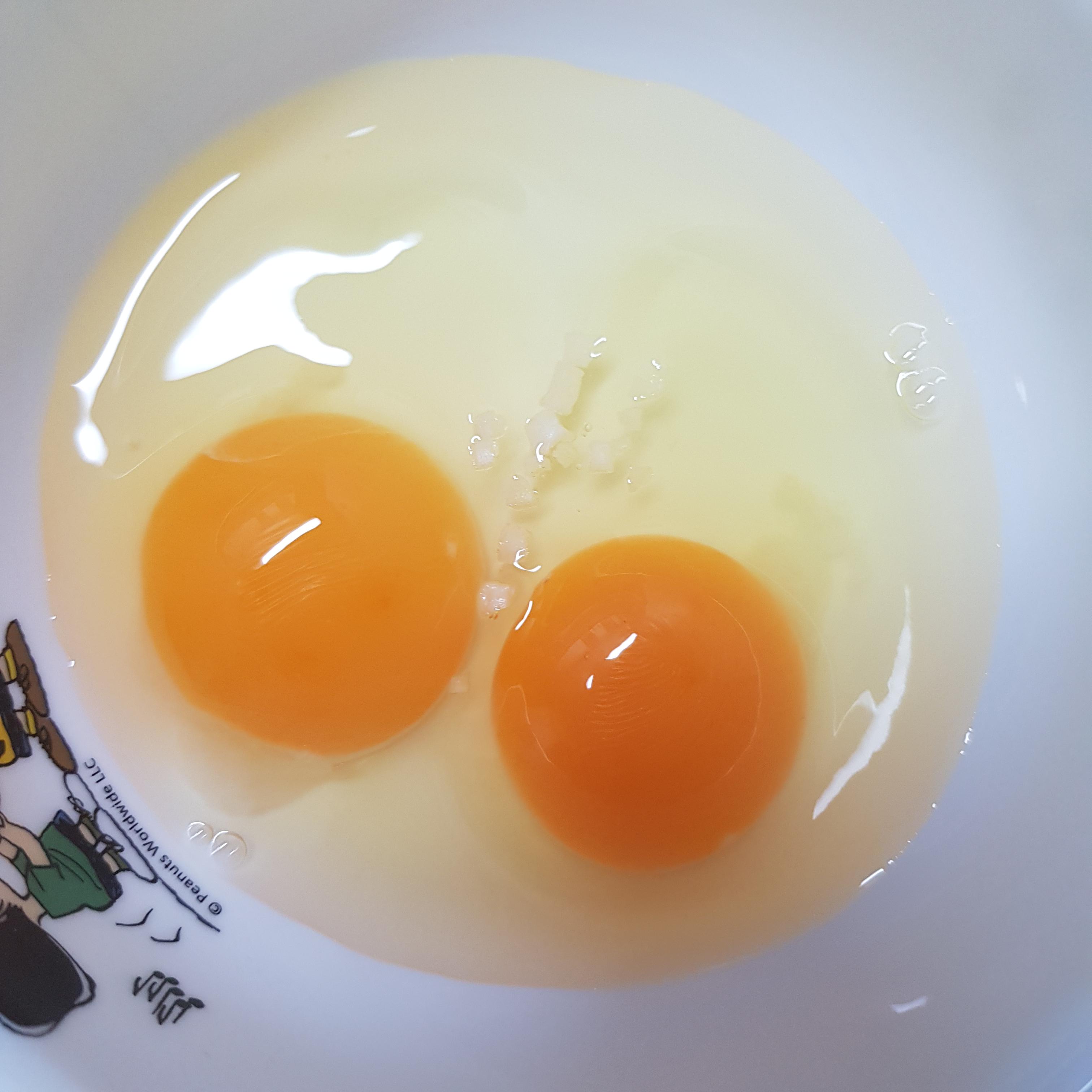 세번째 계란2개에 소금 약간 넣어 저어 줍니다. 0.3큰술정도