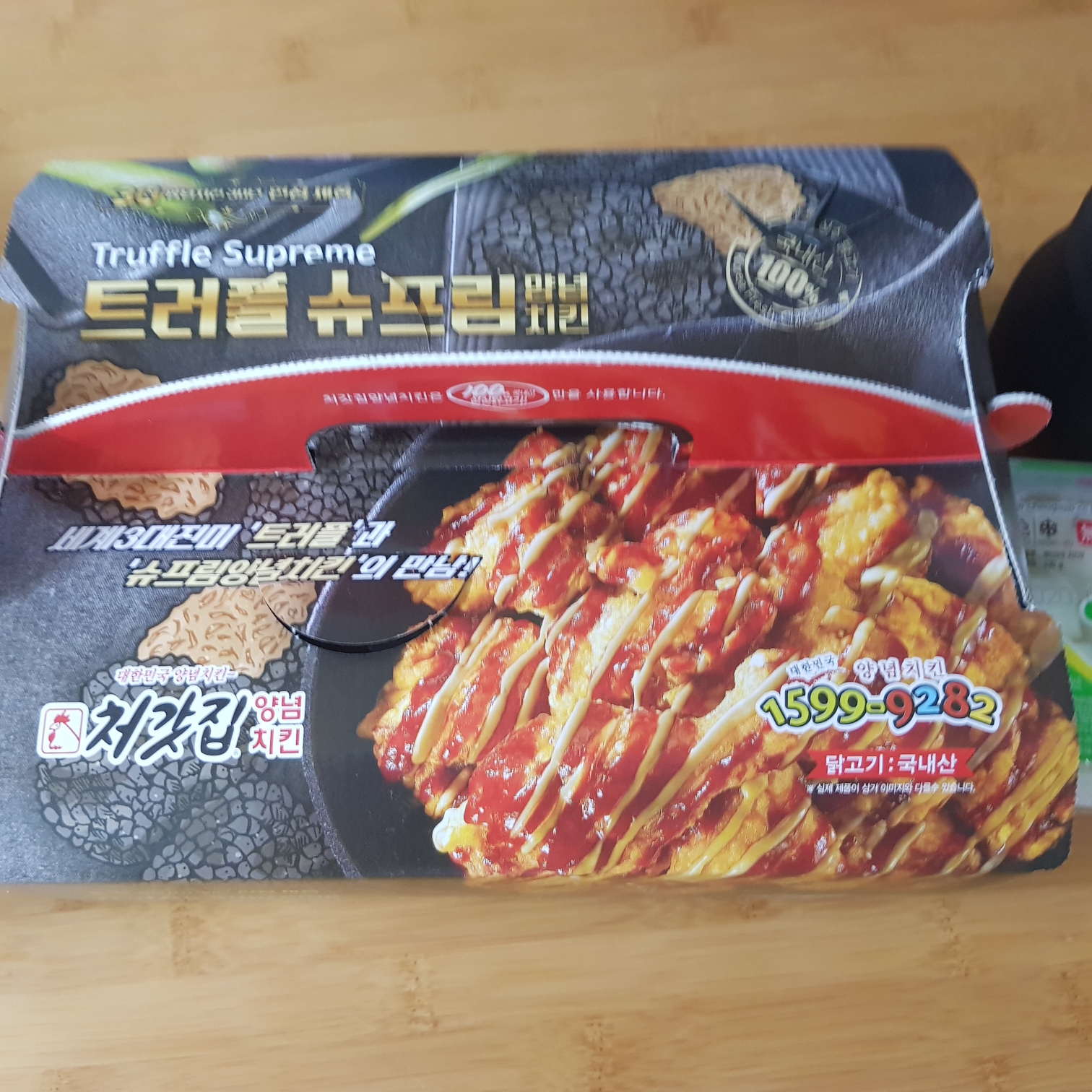 근처에 잘튀기는 처갓집 두마리 치킨으로 배달 시켜먹었습니다:)