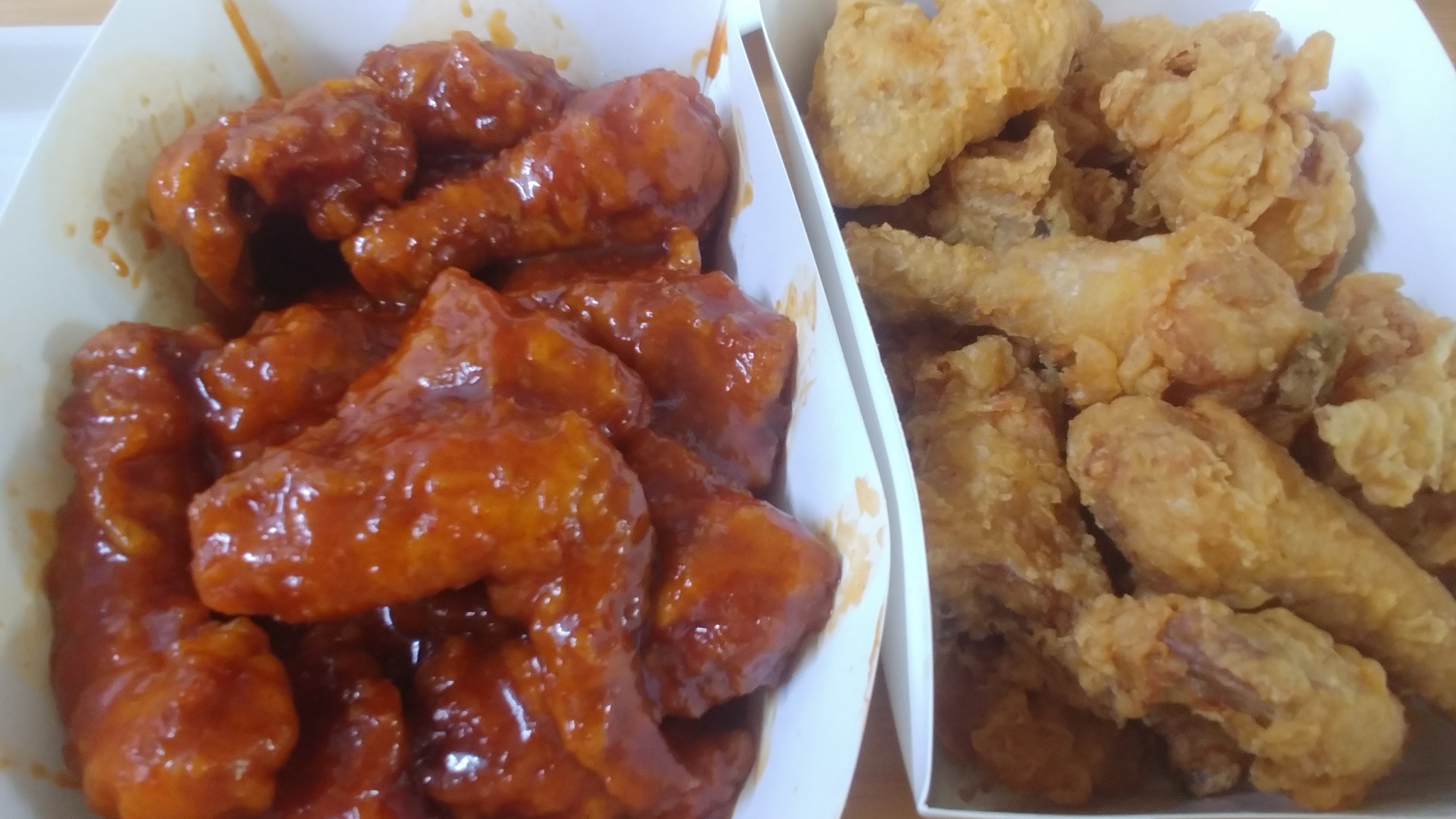 주말에 저녁대신 멕시카나 후라이드+양념 두마리치킨을 먹었습니다!