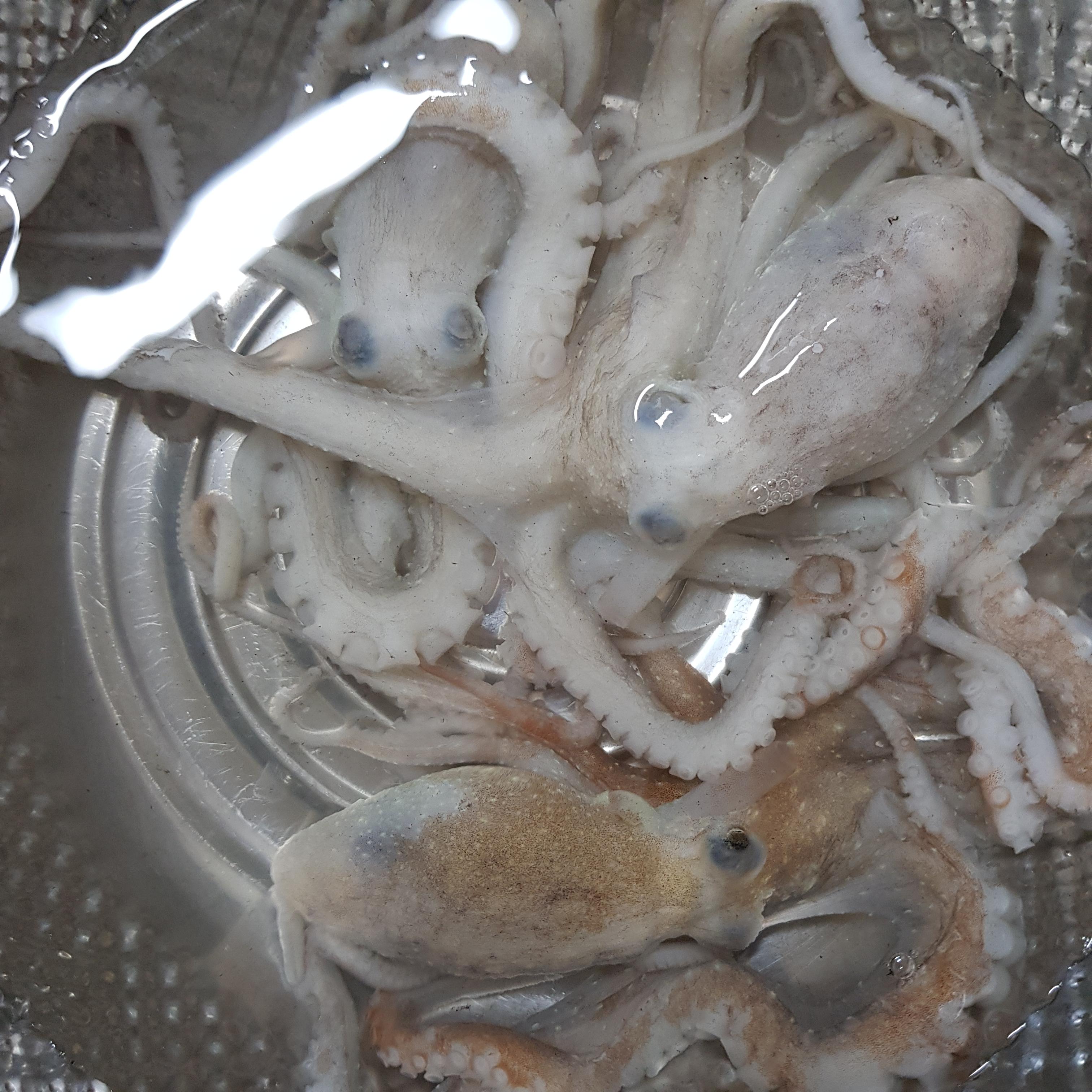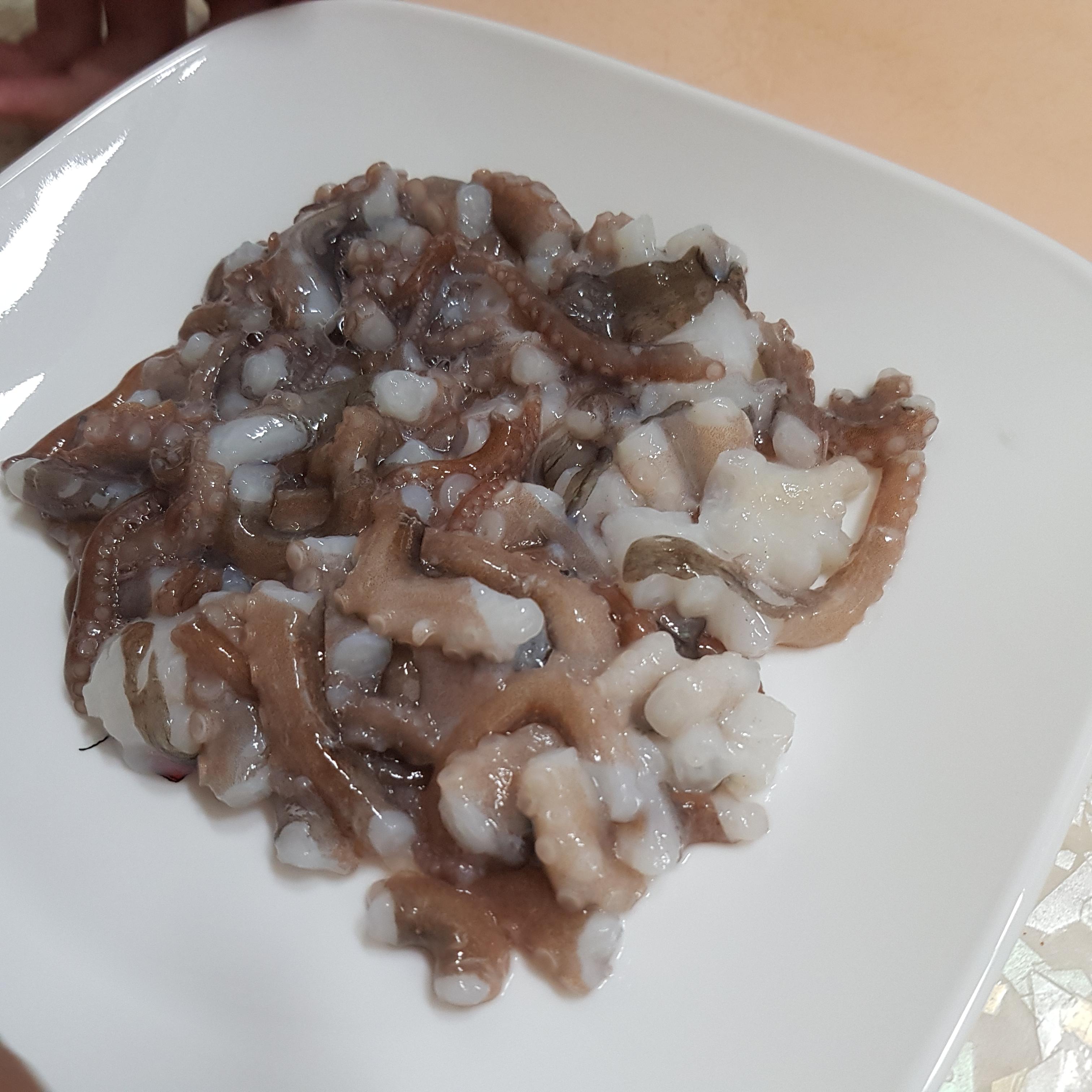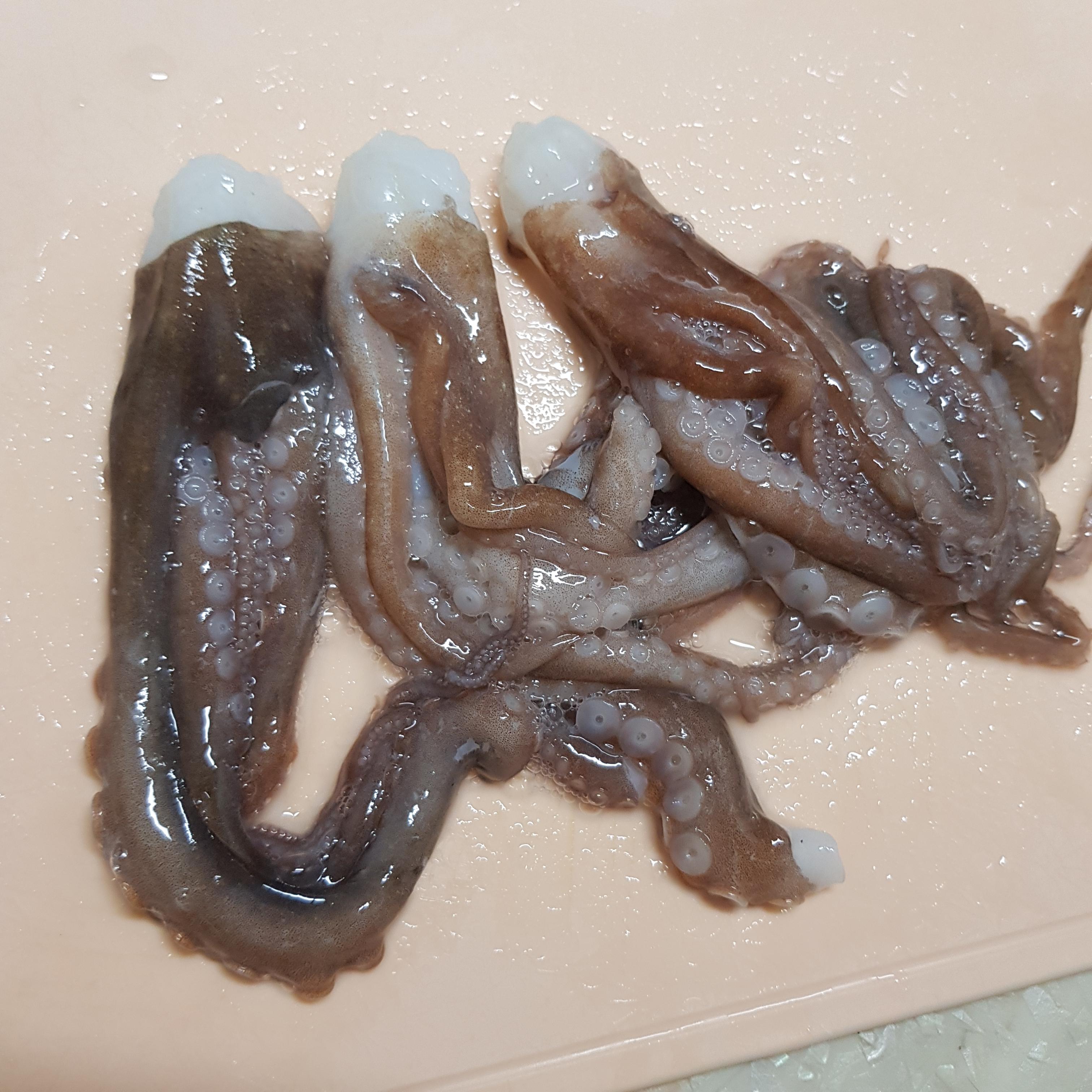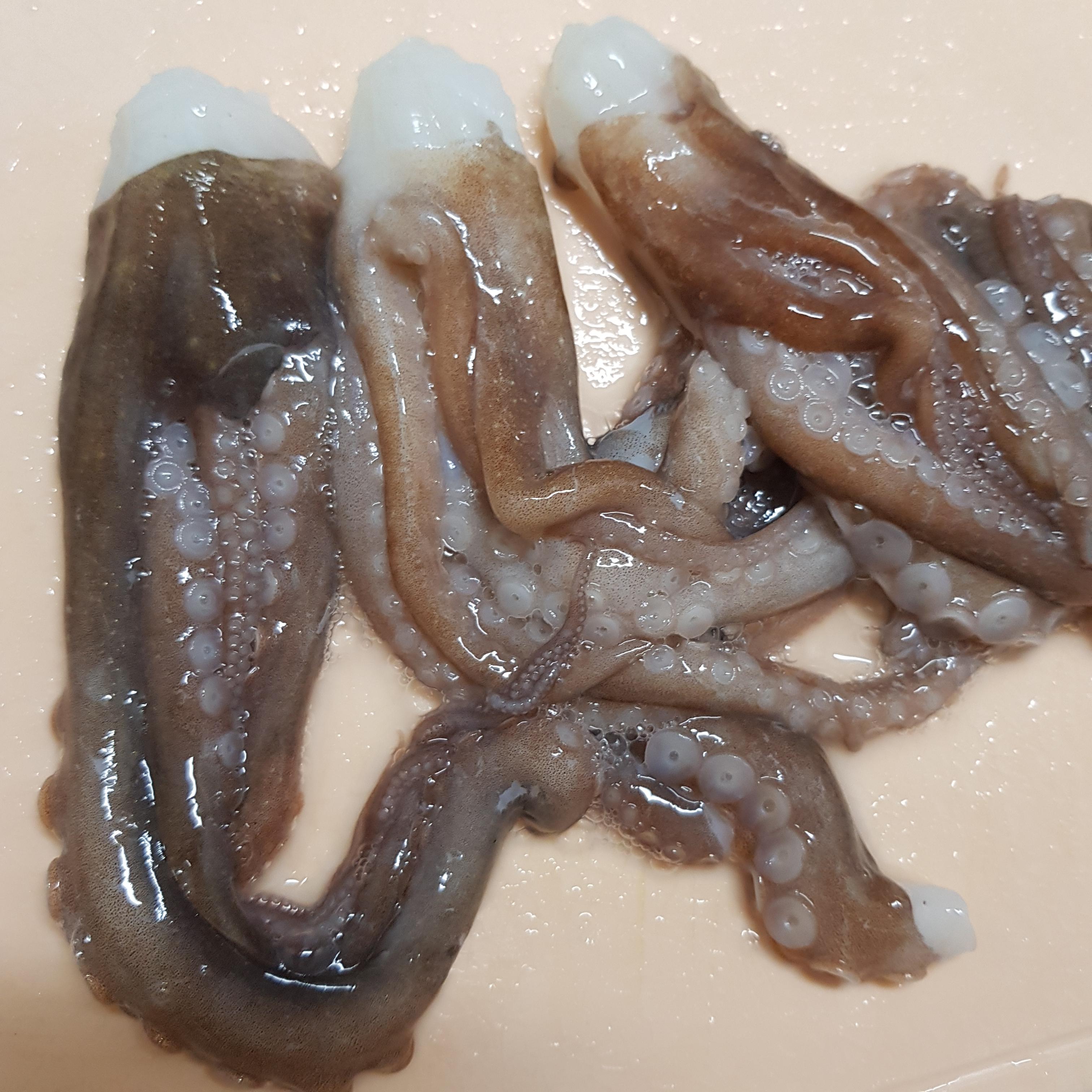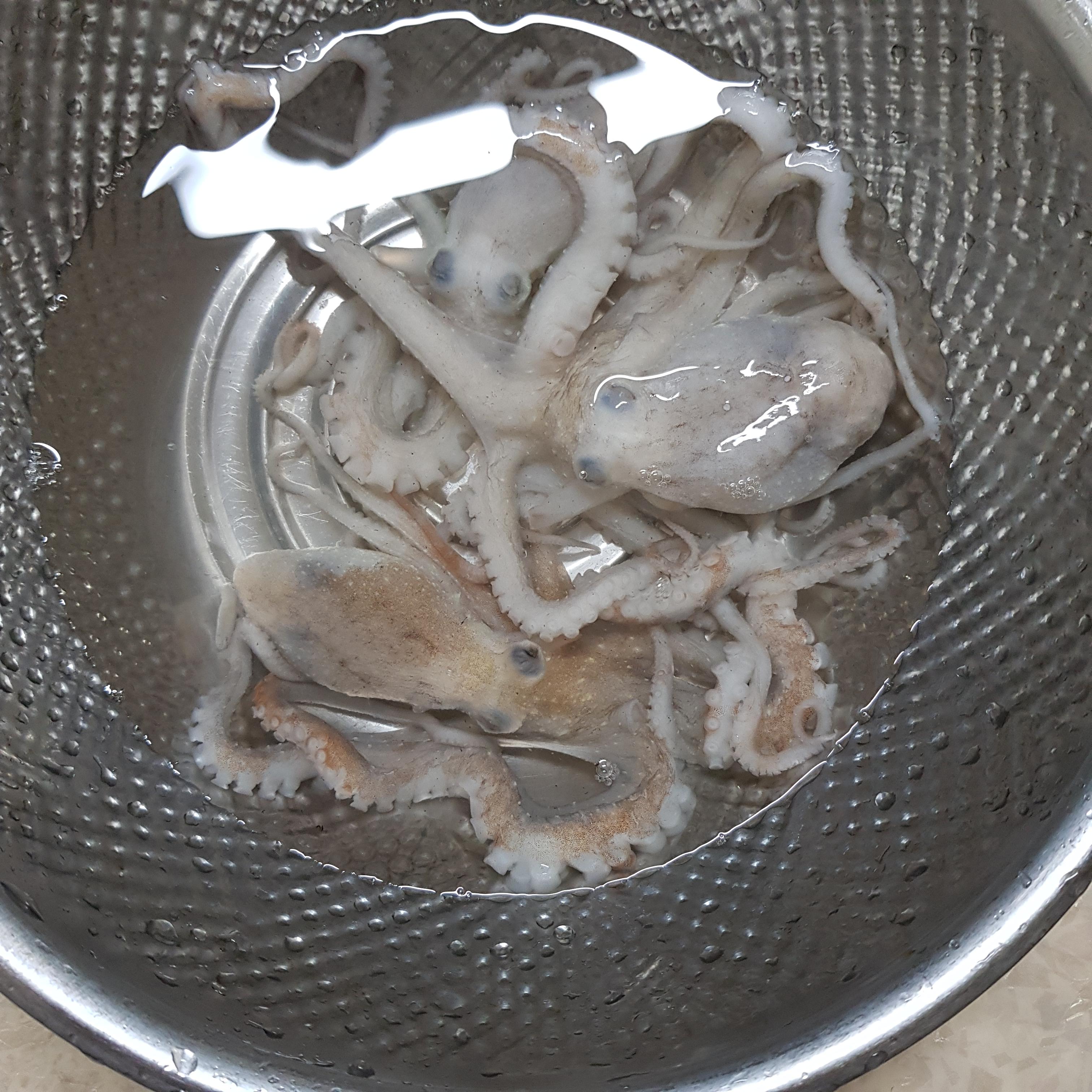 낙지가 기절하면 다리쪽을 깨끗히 문질러줍니다.