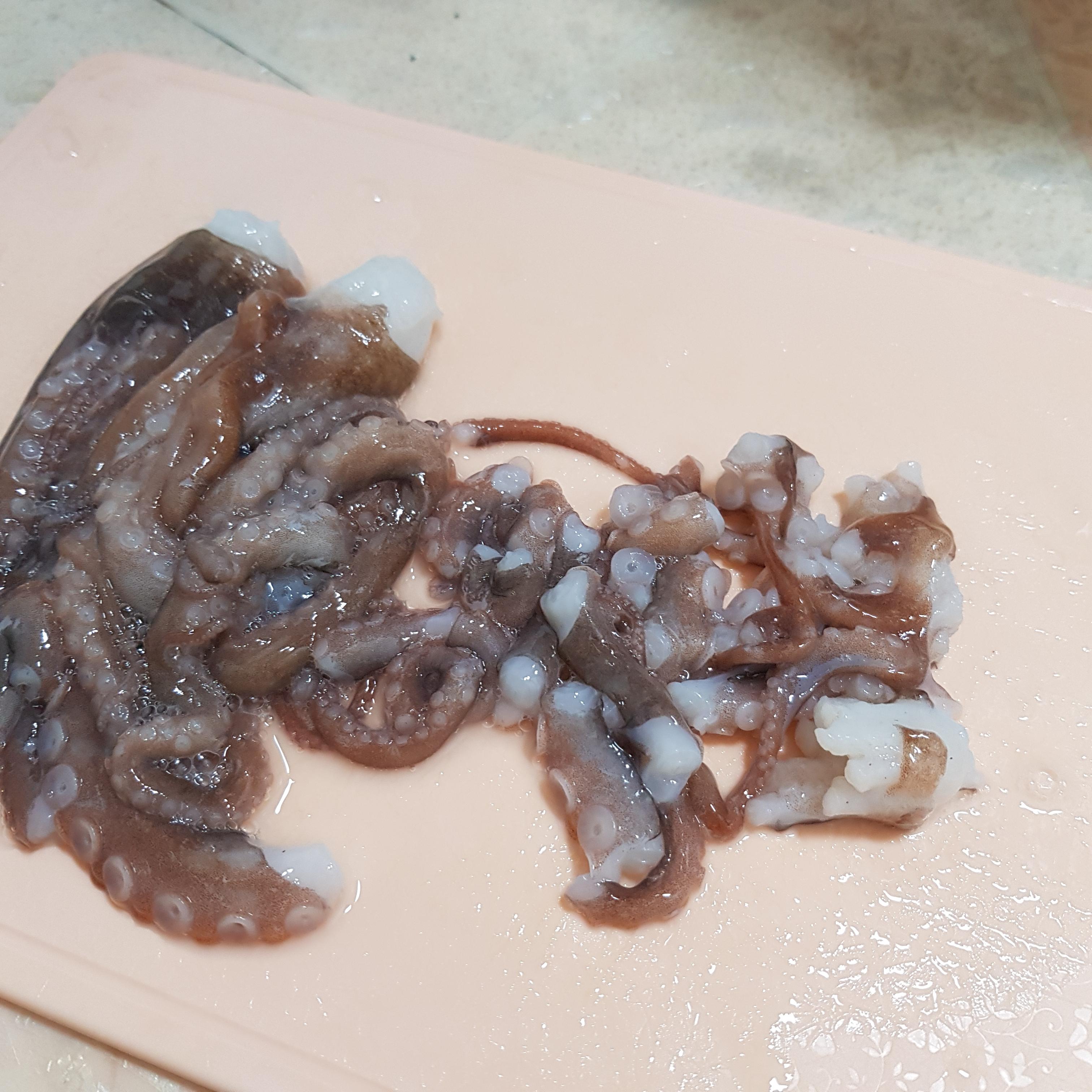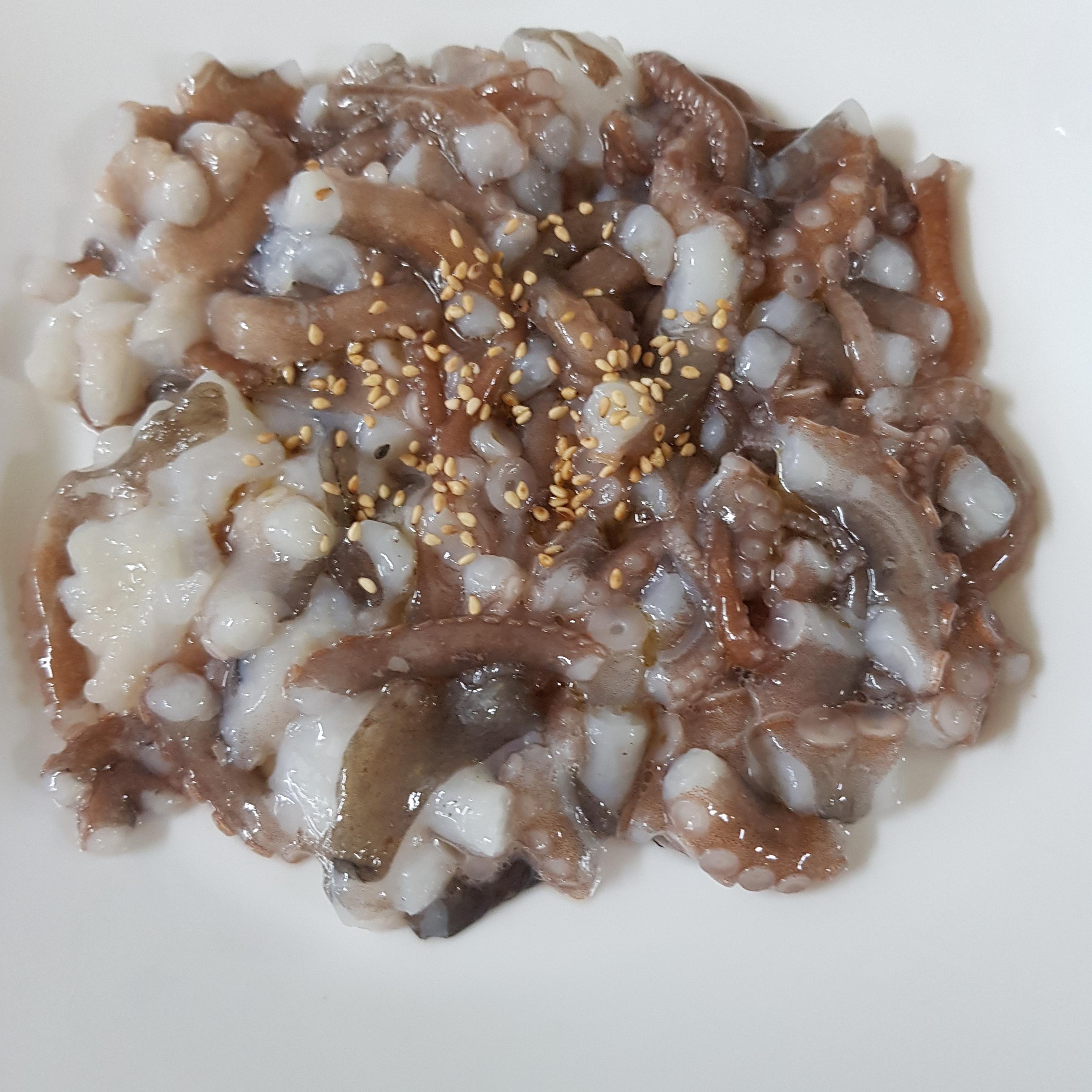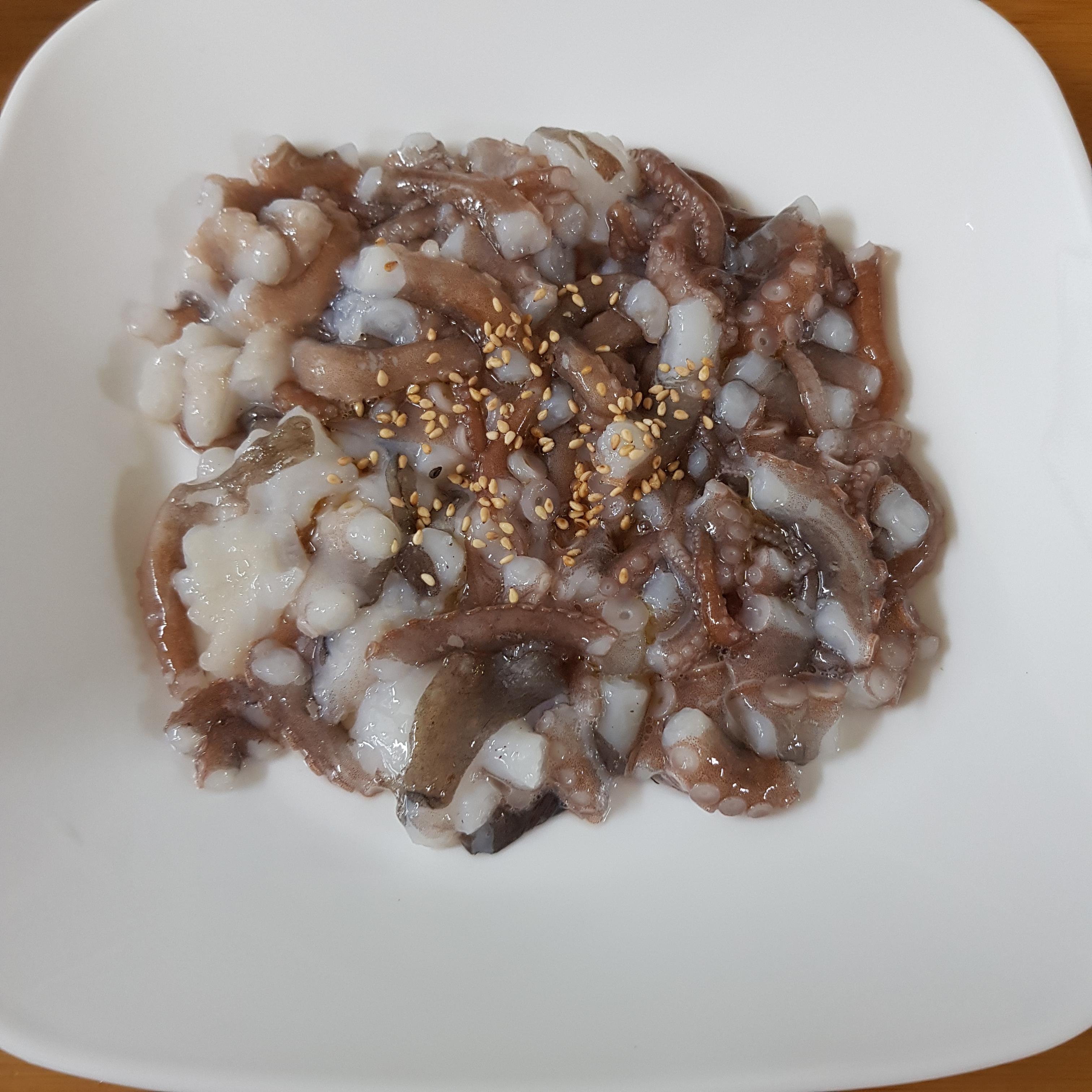 깨끗히 손질한 낙지는 잘게 썰어주세요. 낙지 탕탕이는 잘게 썬후 탕탕
