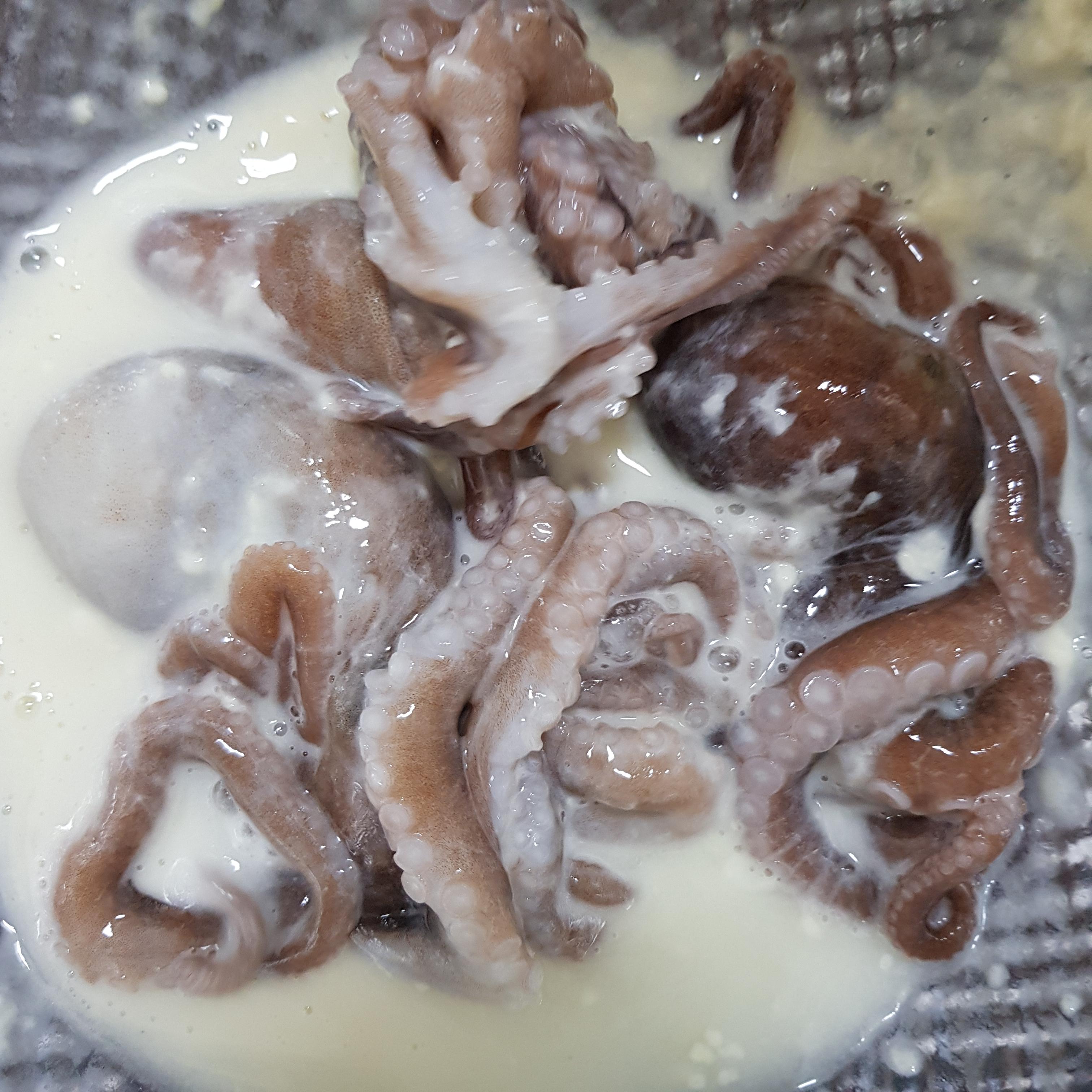 재료: 낙지 3마리, 굵은소금 1수저,밀가루 4수저