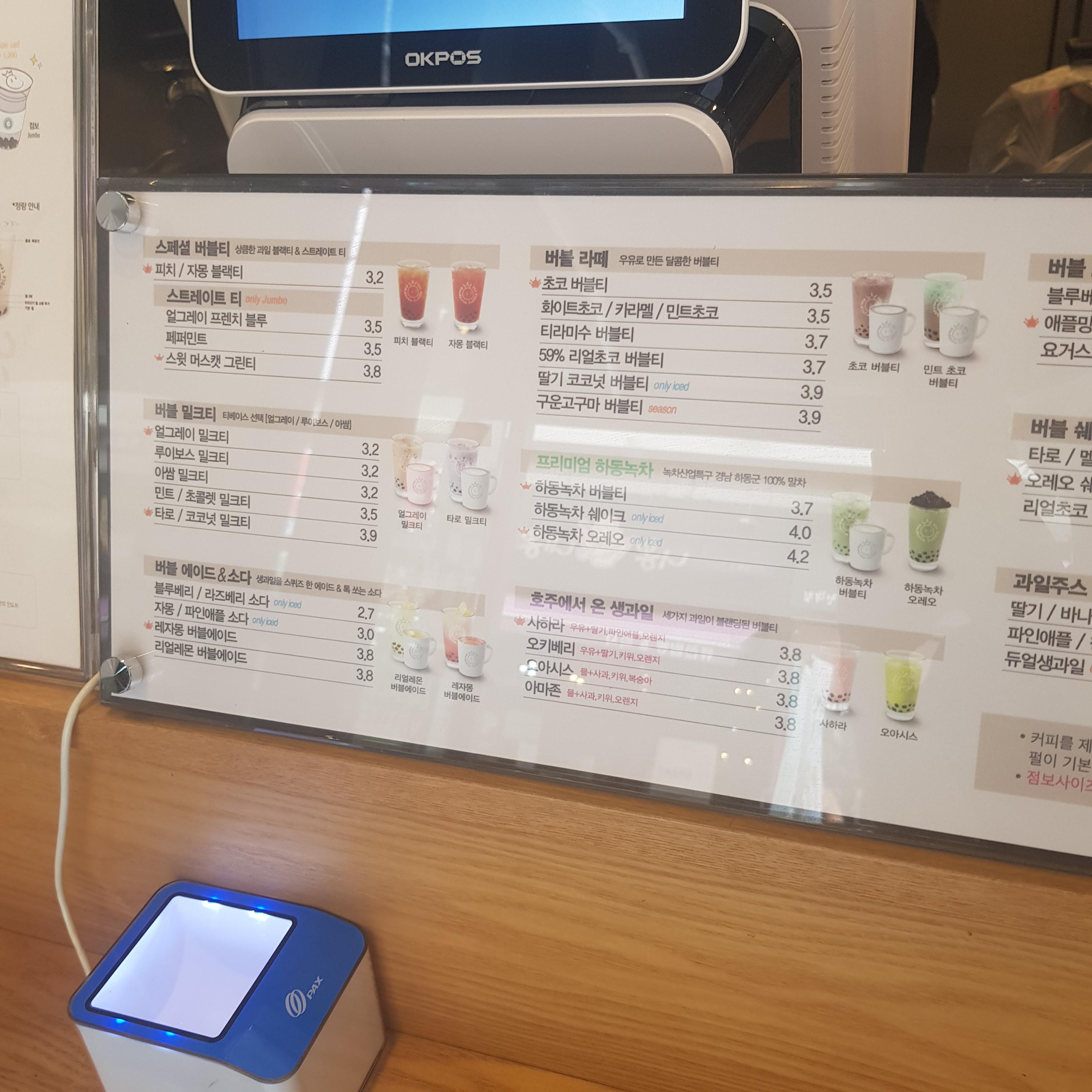 메뉴가 많지만 저희는 주로 타로밀크티 , 초코버블티 ,얼그레이 밀크펄 정도로