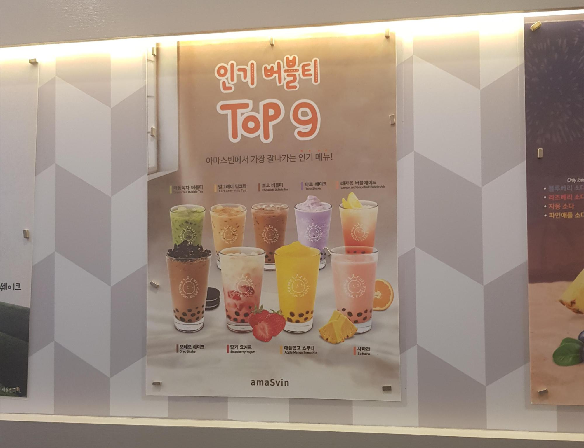 아마스빈 메뉴는 버블스무디/버블쉐이크/ 과일주스 버블티 /요거트/커피/라떼