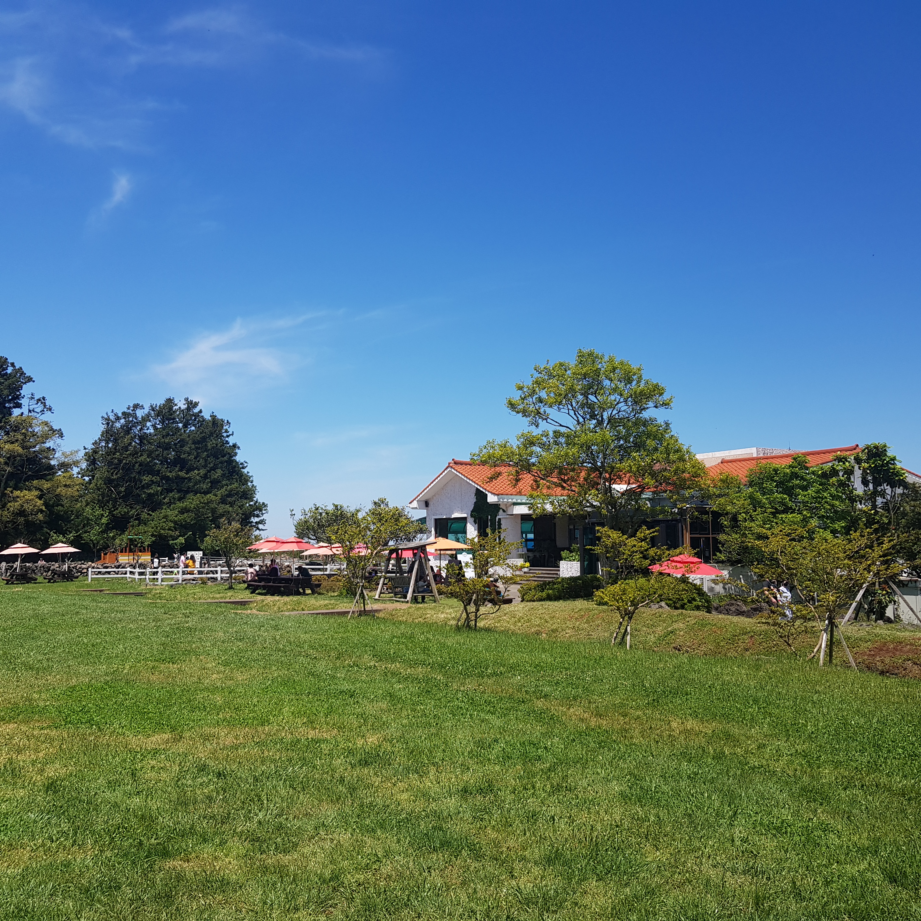잔디밭 농원 모습도 찍어 보았습니다. 빨간 건물이 카페입니다.