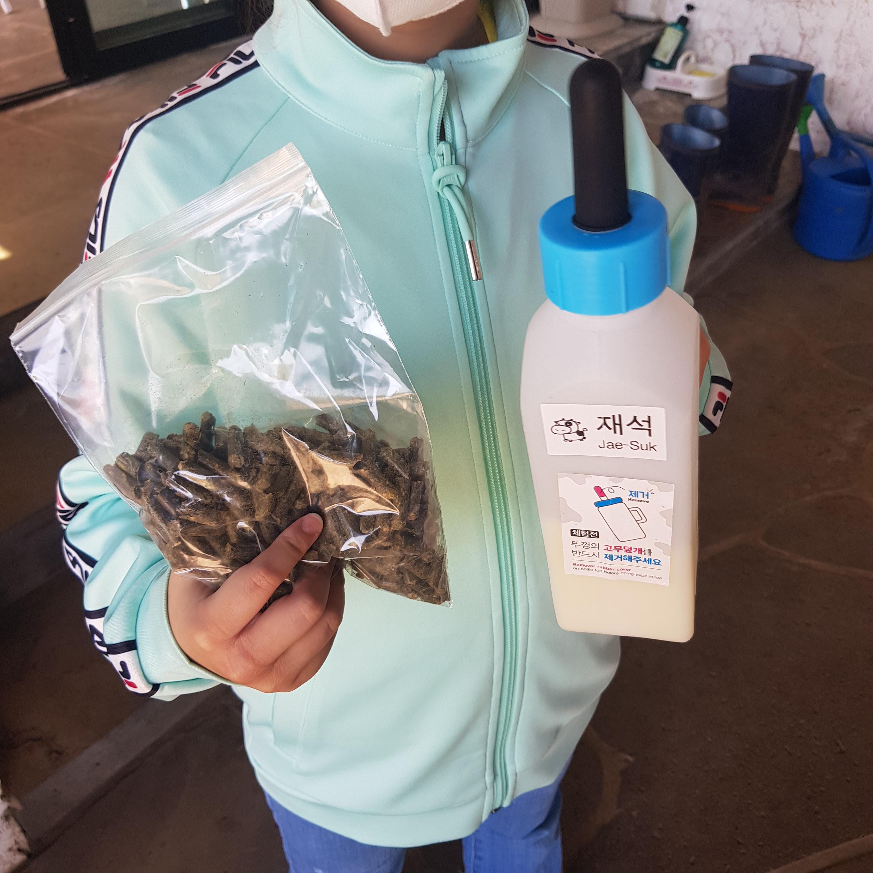 사료는 어른 젖소에게 줘야되서 다른장소에서 주었습니다.