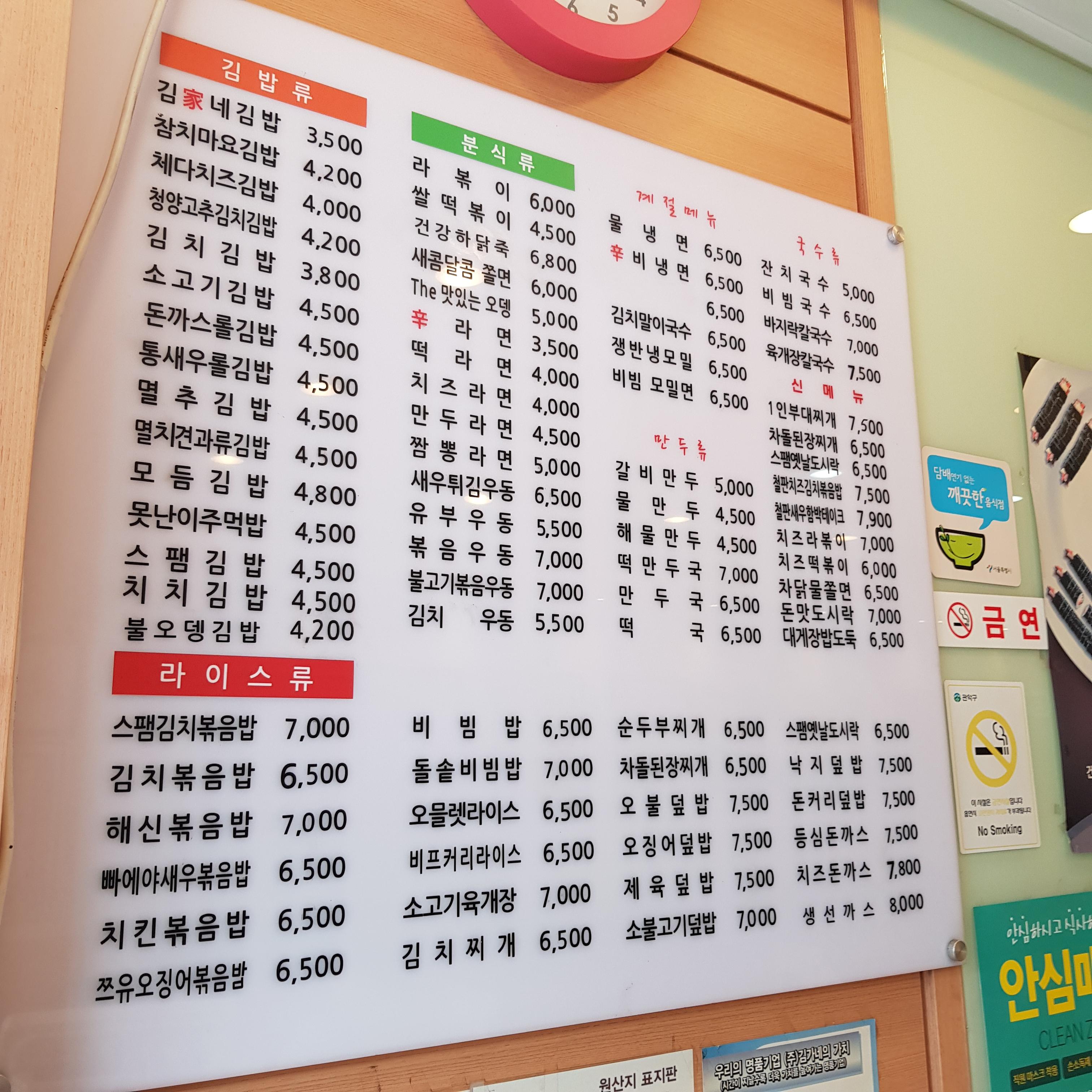 모든메뉴는 포장이 가능하며, 김가네는 김밥이 맛있는거같아요.