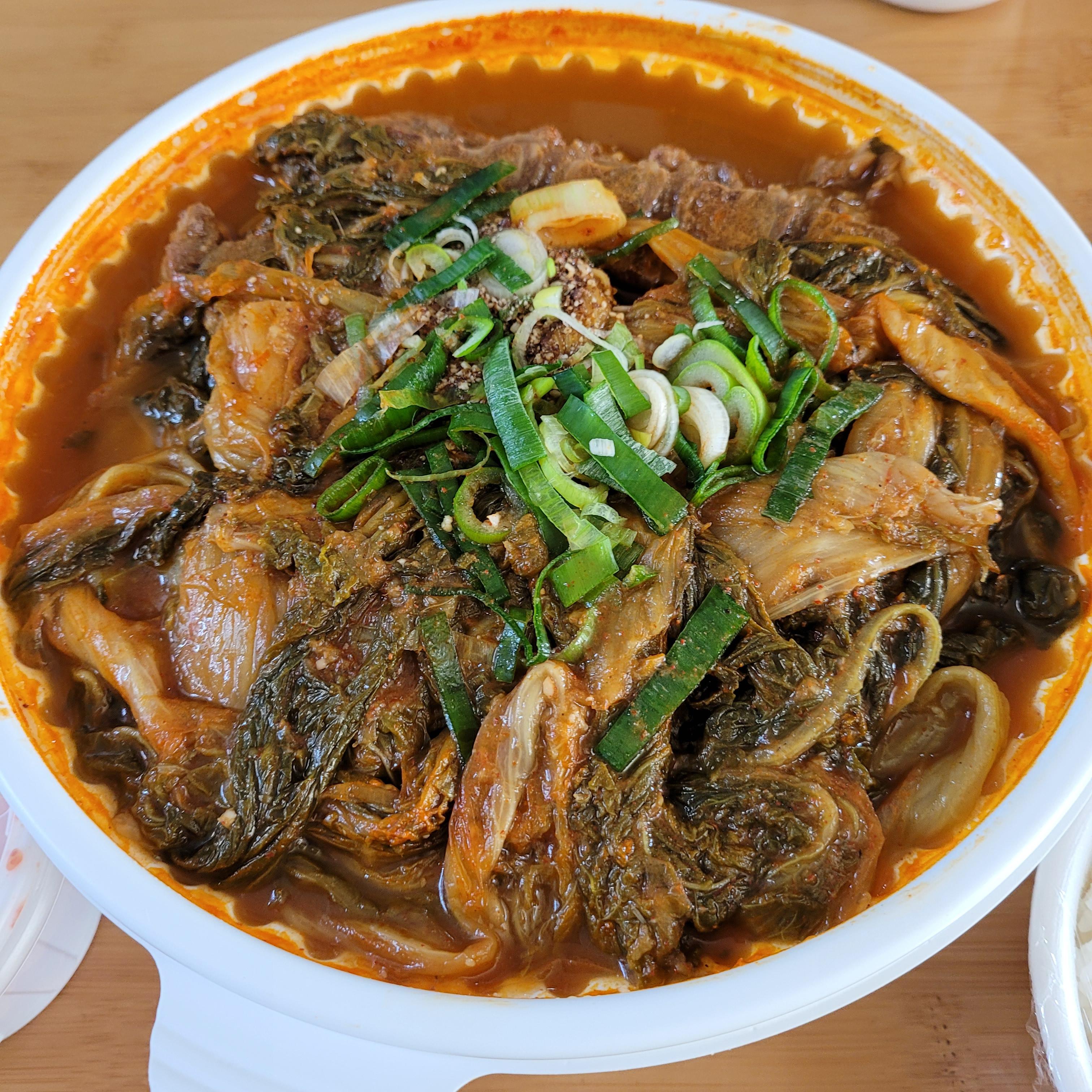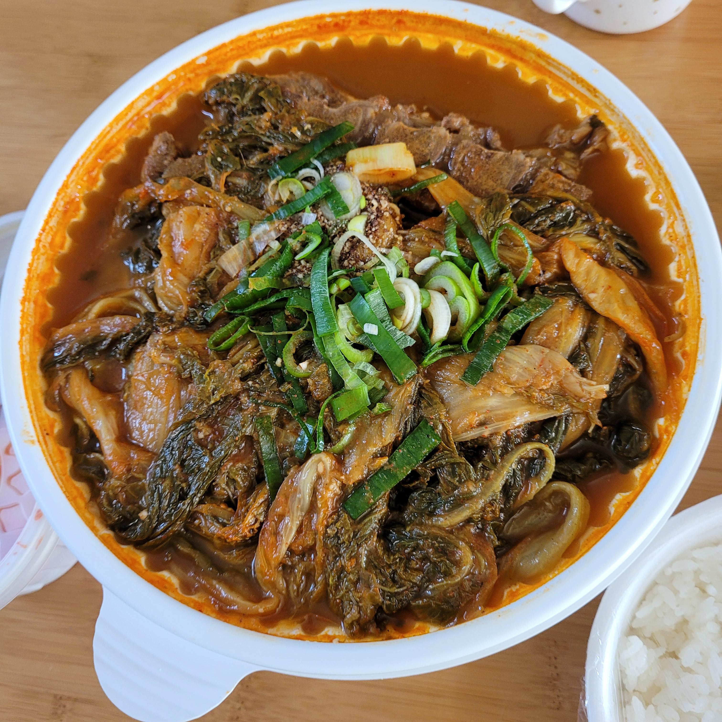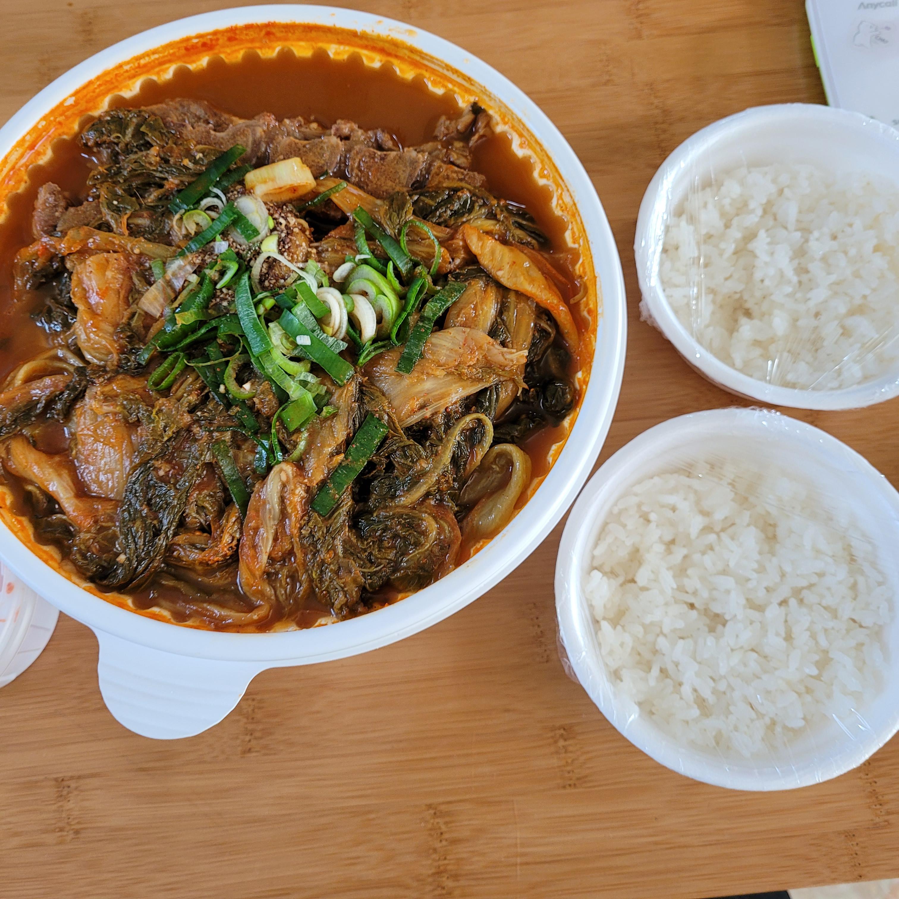 완전 뜨겁게 포장도 아니라 , 집에서 냄비 큰거에 데워 먹었는데