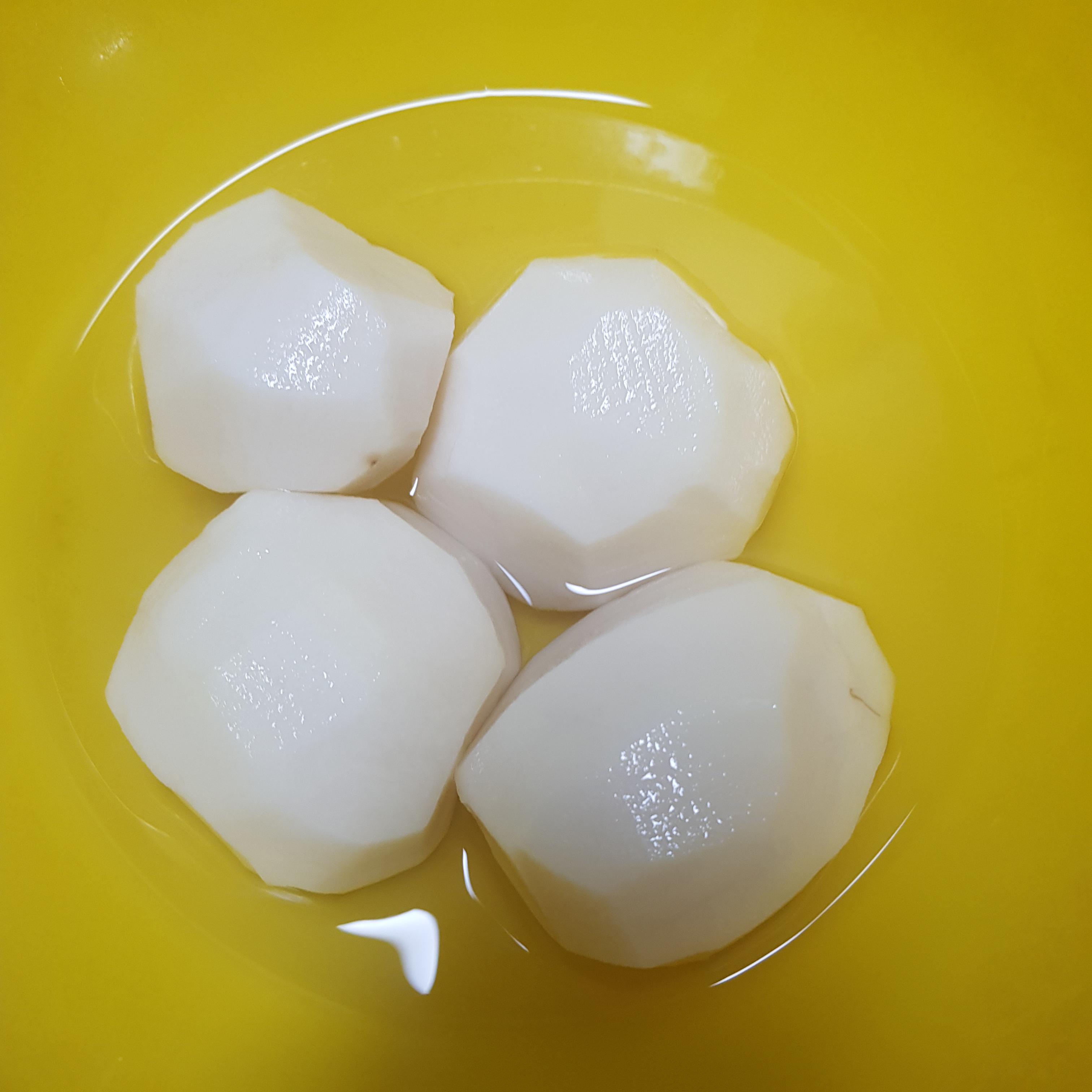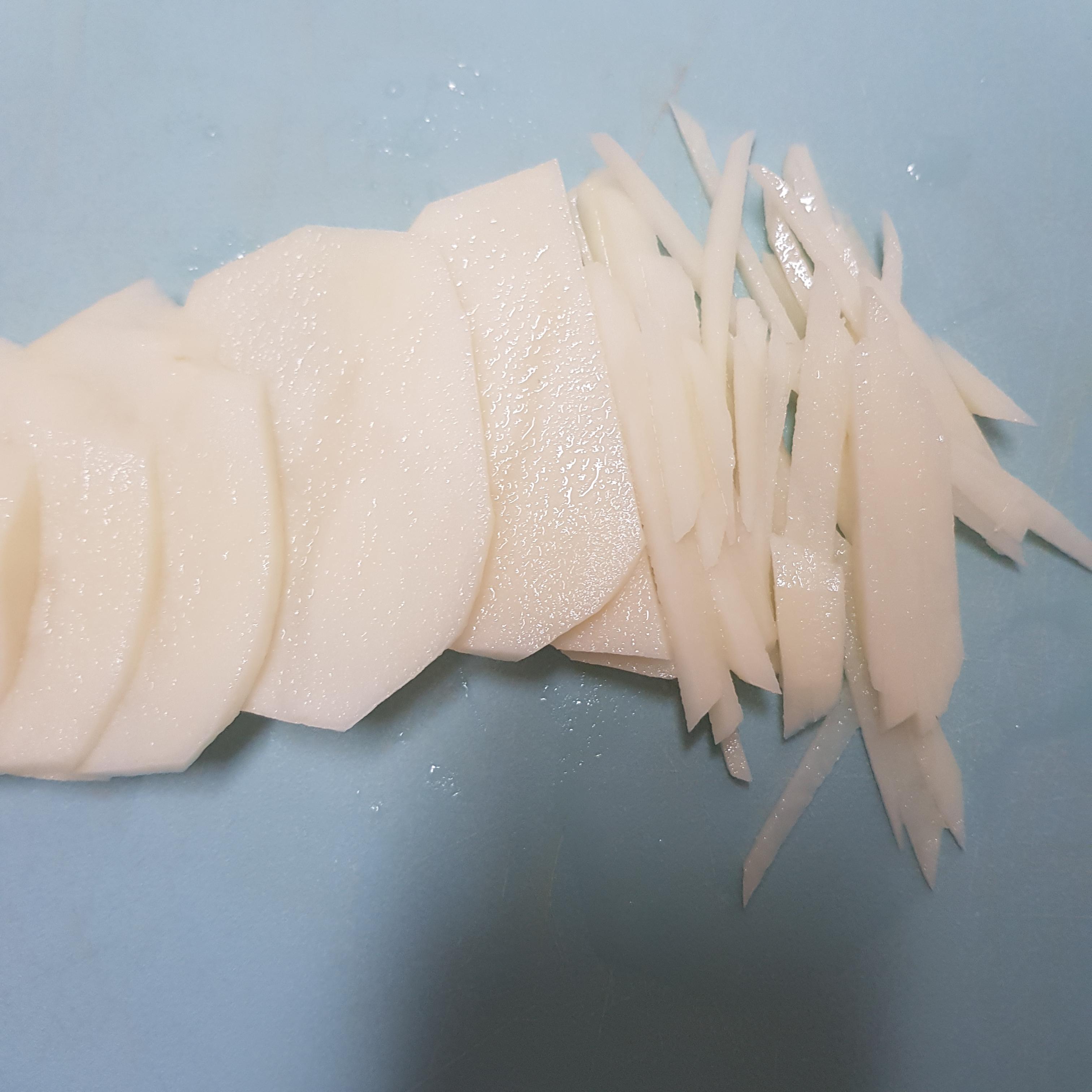 두번째 감자는 껍질을 까서 채 썰어줍니다.