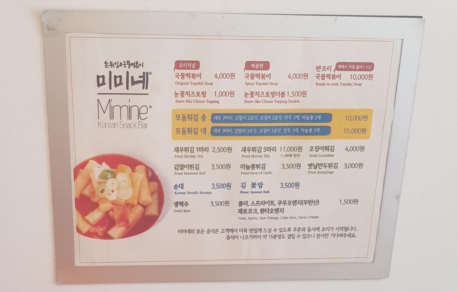 미미네 떡볶이 홍대본점앞 입니다. 아래에는