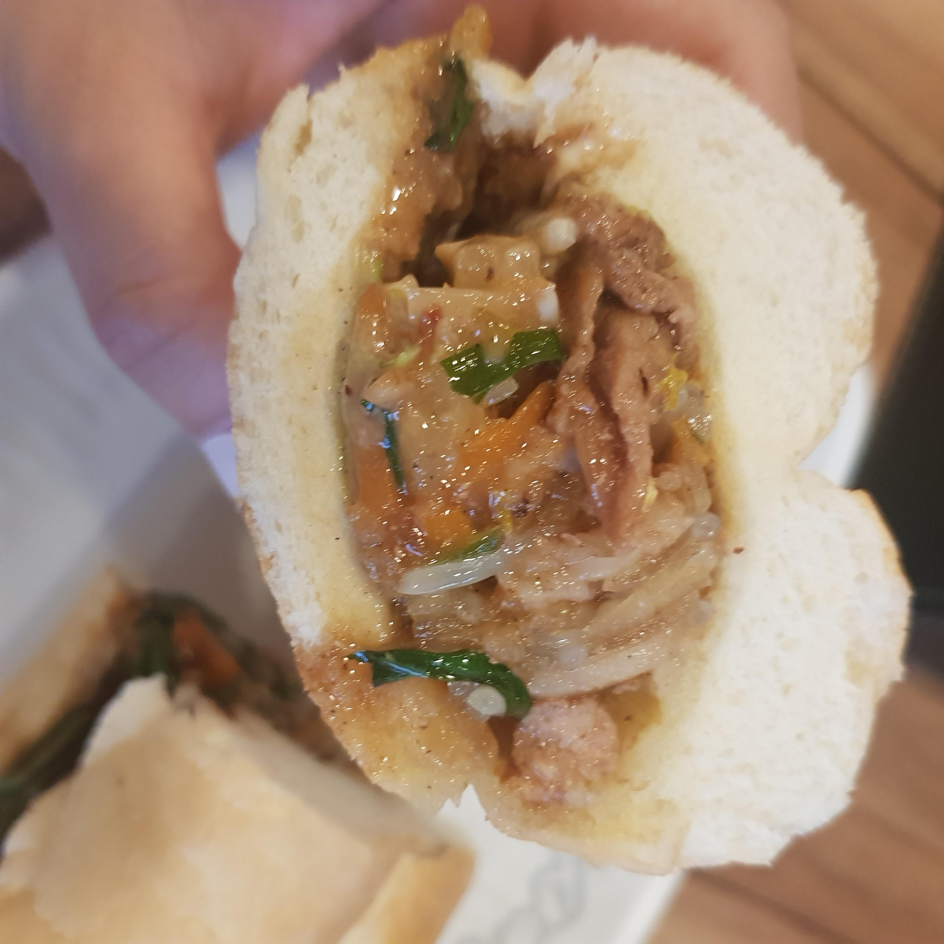 숯불덮밥의 고기와 똑같고 +소스가 첨가되어 샌드위치같은맛