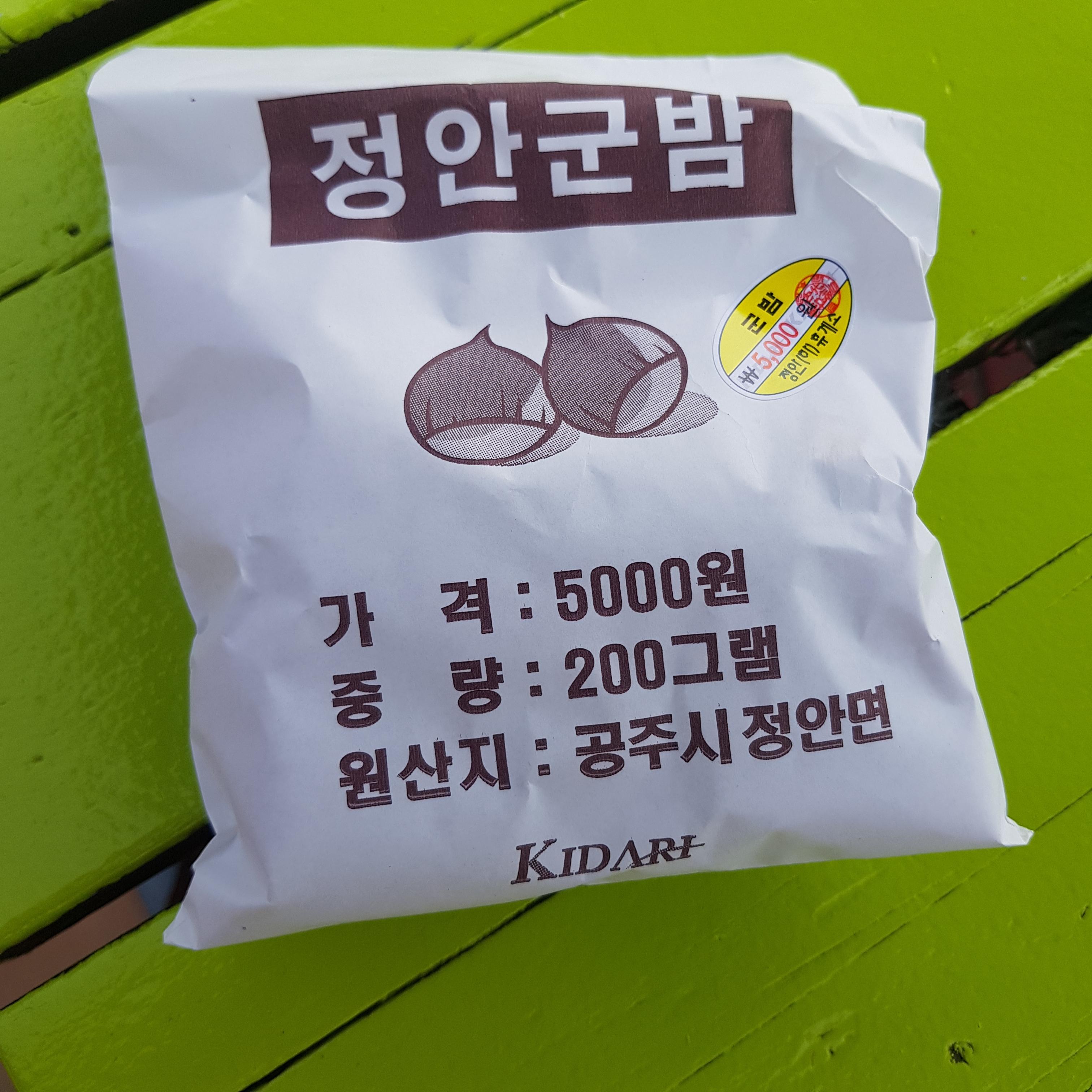 가격은 5천원 200g 정안면에서 재배한 밤을 사용하였어요.